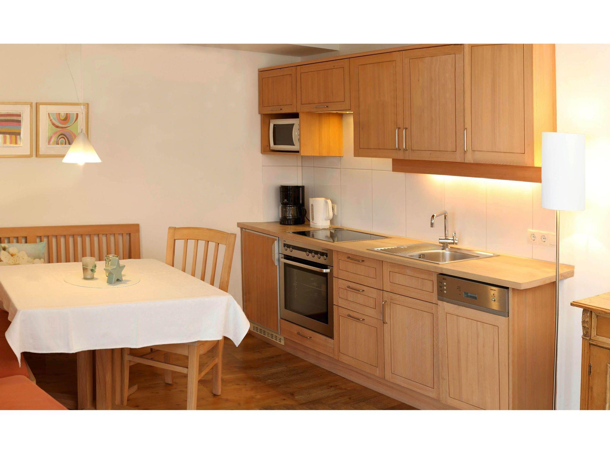 35 qm, 1 Schlafzimmer, Wohnbereich mit Sitzecke, Schlafcouch und Küche (Herd, Backofen, Kühlschrank mit Gefrierfach, Mikrowelle, Spülmaschine, Kaffeemaschine, Wasserkocher, Geschirr, Tischwäsche), Dusche, WC, Fön, inkl. Handtücher, Bettwäsche, kostenloser Internetanschluss, Lage: Westseite mit Balkon, Endreinigung inkl.
