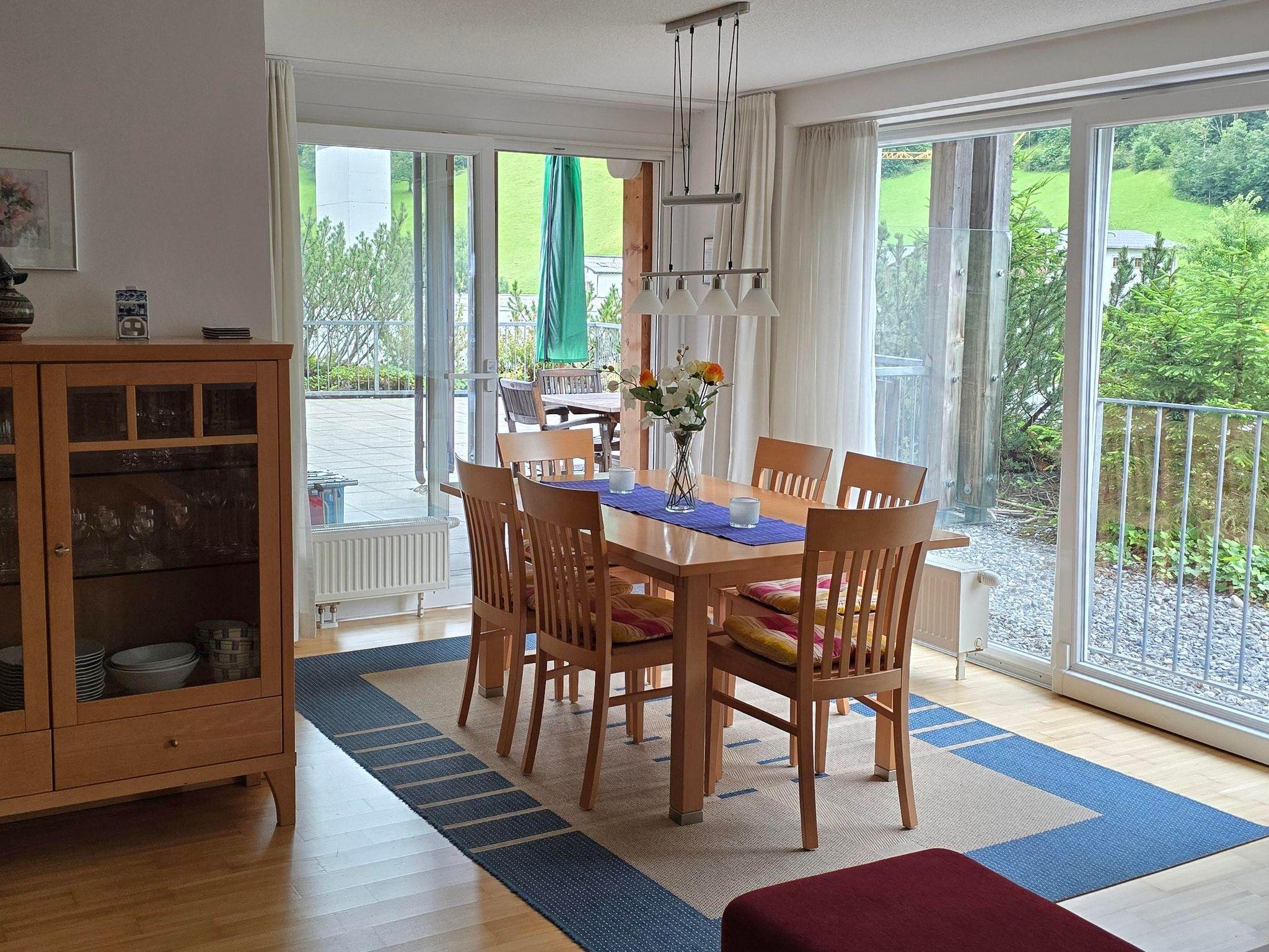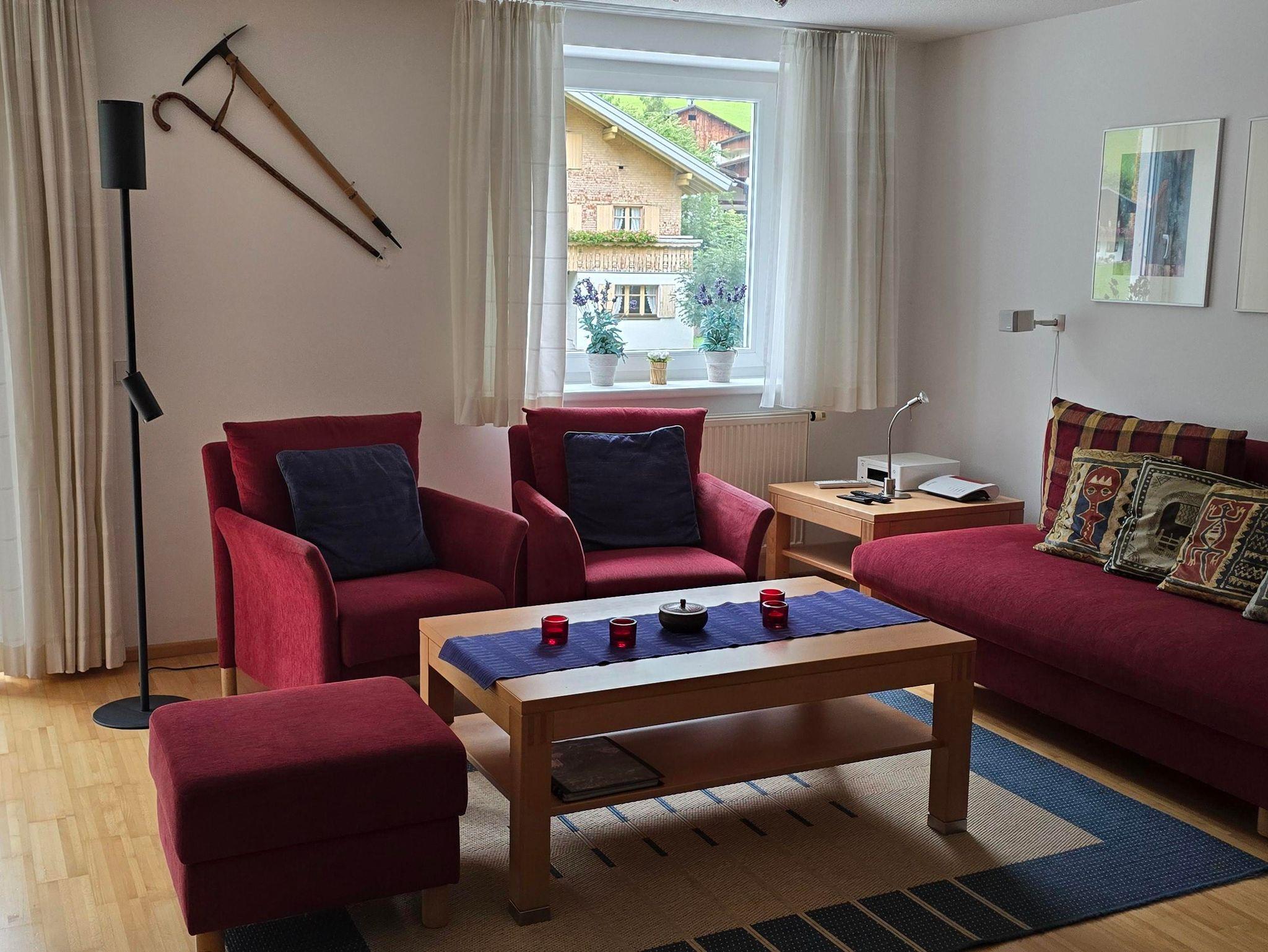 Die Wohnung (90 m²) hat 3 Schlafzimmer: 2 mit Doppelbett und 1 mit Hochbett. Außerdem ist die Wohnung ausgestattet mit 2 Badezimmer: 1 mit Dusche/Bad Kombination, separate Toilette und 1 mit Dusche mit Toilette. Die offene Küche hat einen Kühlschrank mit Gefrierfach, einen Geschirrspüler, ein Ofen und eine Mikrowelle. Im Vorratszimmer gibt es eine Waschmaschine und ein Trockner. Internet Radio/CD-Spieler, Apple TV, DVD und Flach TV sind auch vorhanden. Die Wohnung besitzt eine riesige Terrasse (50 m²) - mit Gartenmöbel - und mit herrlichem Blick auf die Seekopf, Zirmenkopf, Felsenkopf, Schesaplana, Mottakopf und Panüelerkopf. Rauchen nur auf die Terrasse, nicht in der Wohnung! Haustiere sind nicht erlaubt.