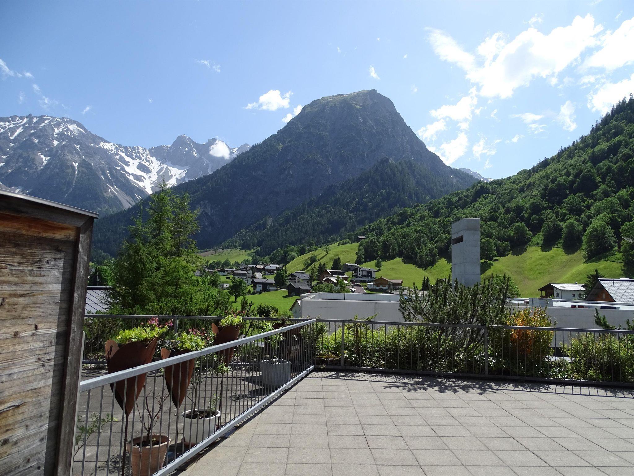 Genießen Sie die luxuriöse 4-Zimmer-Wohnung mit der großen 55 m² großen Südterrasse und herrlichem Blick auf die gesamte Bergkette, einschließlich der Schesaplana (2964 m). Auf der Terrasse stehen neben Gartenmöbeln auch Liegestühle zur Verfügung.