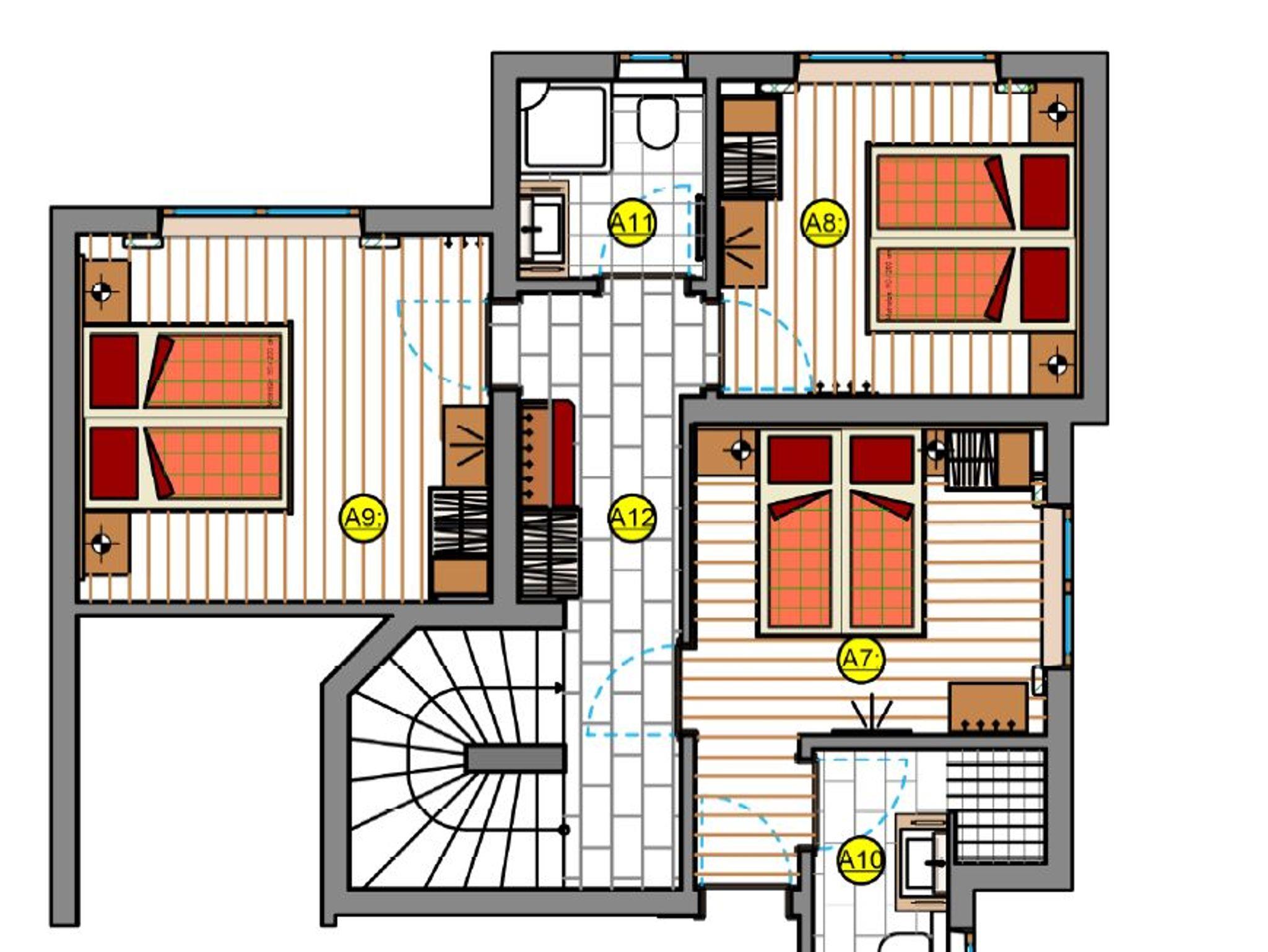 besteht aus 2 Schlafzimmern, 2 x Dusche/ WC, Wohn-Esszimmer mit gut ausgestatteter Küche und TV, Vorraum, Terrasse.