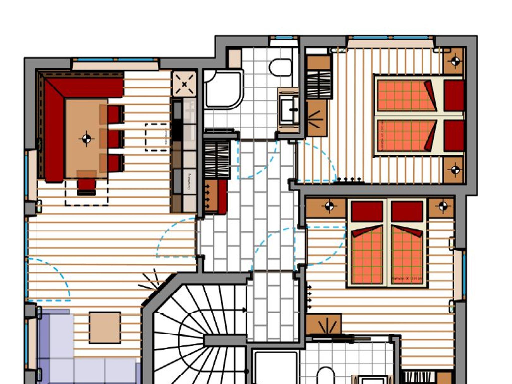 besteht aus 5 Schlafzimmern, 4 x Dusche/ WC, Wohn- Esszimmer mit TV und gut ausgestatteter Küche, Vorraum, Terrasse