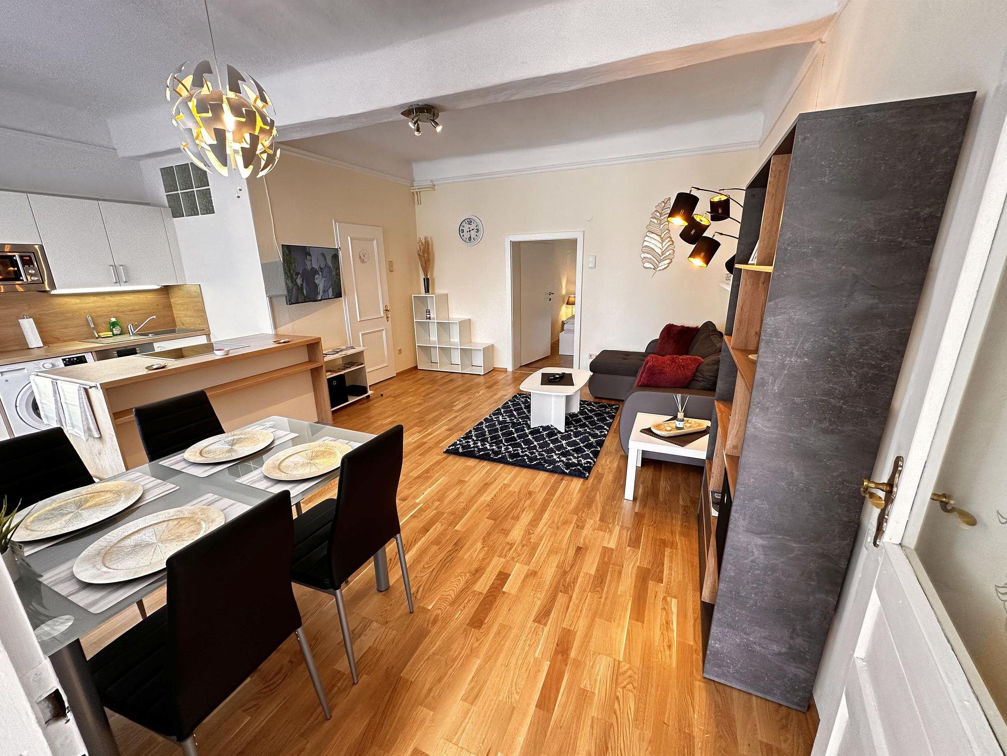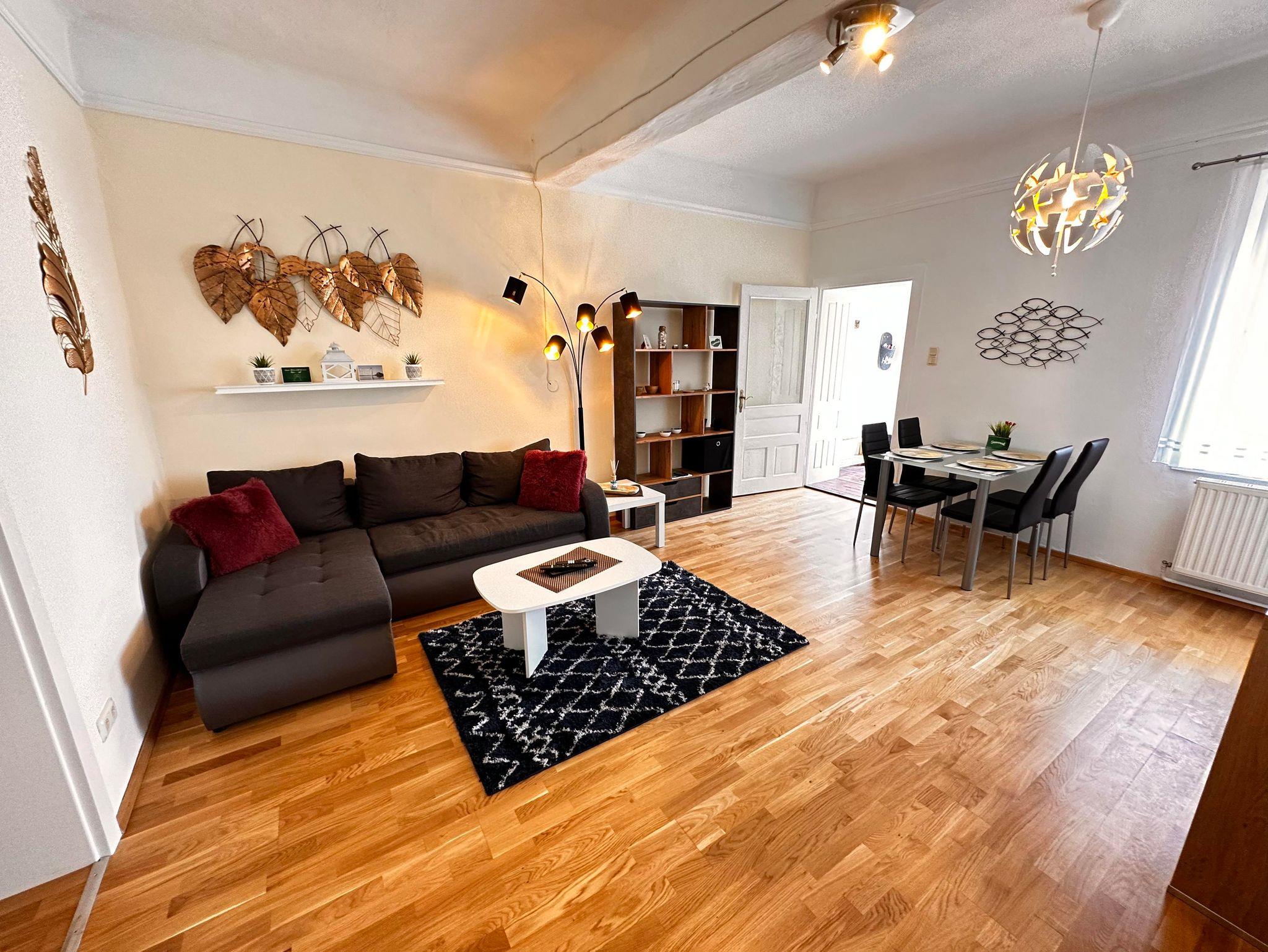 Gemütlich für 3 Personen: Auf 40 m² erwarten Sie neben der vollausgestatteten Küche, einem Wohnzimmer und Schlafzimmer, ein schöner Garten mit Grillmöglichkeiten und ausreichend Parkplätze sowie mitgebrachte Fahr- und Motorräder können Sie unter Dach im Innenhof abstellen.