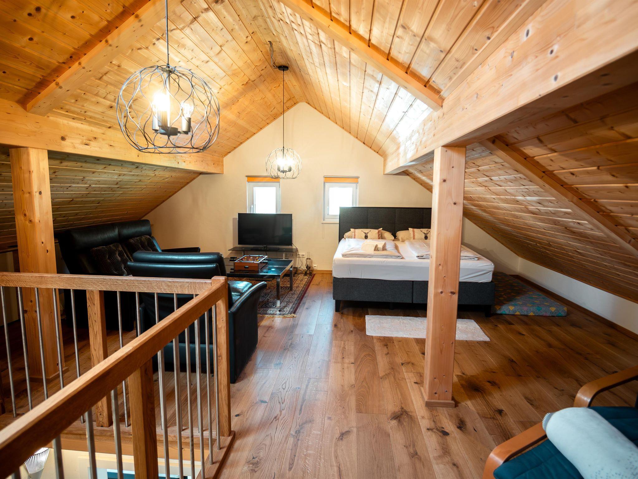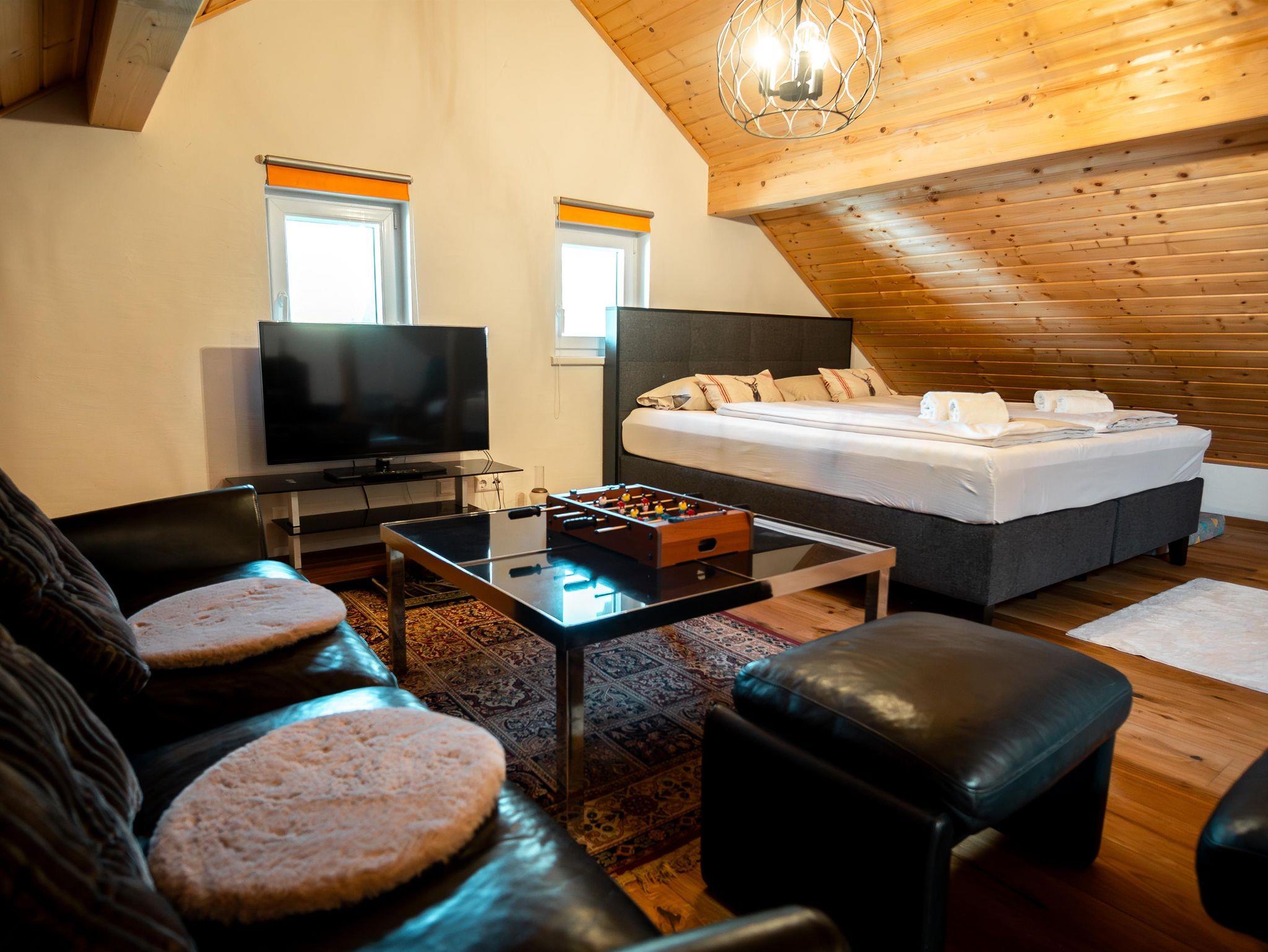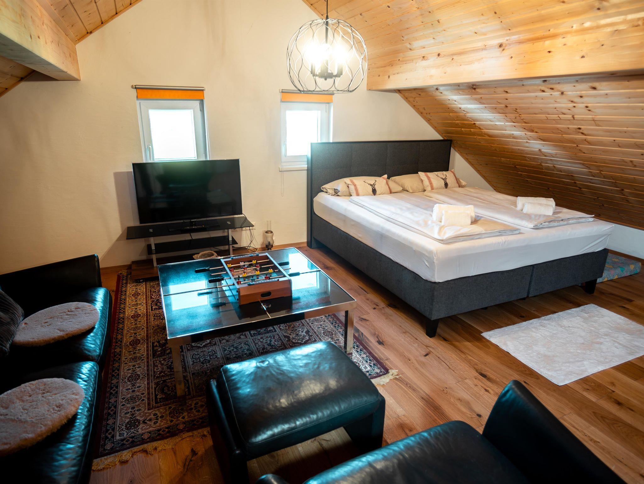 S´Holzhäusle bietet auf 110 m² Platz für bis zu 6 Personen. Auf zwei Ebenen erwarten Sie zwei Schlafzimmer mit Doppelbetten (eines mit zwei Zusatzbetten) zwei Bäder, ein 400 m² großer Garten mit Fußballtoren und Badmintonnetz sowie eine 60 m² große Terrasse. Genießen Sie den Bergblick, überdachte Parkplätze und die ruhige, private Lage – nur 200 m vom See entfernt und trotzdem mitten im Geschehen.