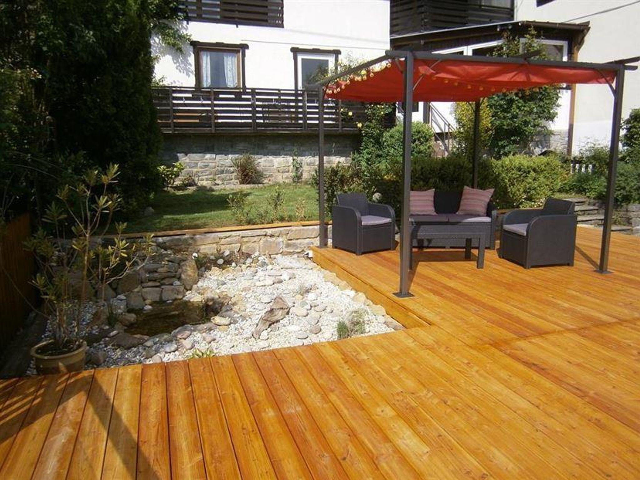 Das Apartment hat eine überdachte Gartenterrasse und eine Sonnen-Terasse da könnt ihr unter freiem Himmel speisen oder auch nur ein kühles Getränk genießen und dabei den Sonnenuntergang über dem See beobachten.