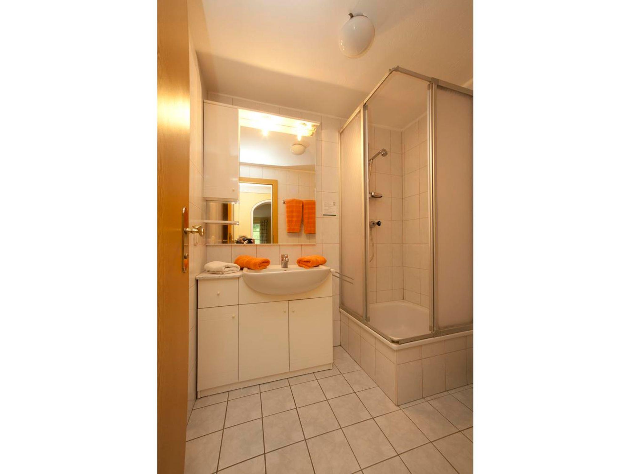 Vorraum, Dusche mit WC, Küche mit Ess-Wohnraum und zwei getrennte Schlafräume. Ein Zimmer ist mit Doppelbett und das 2. Zimmer ist mit Doppelbett und einem Zusatzbett ausgestattet.