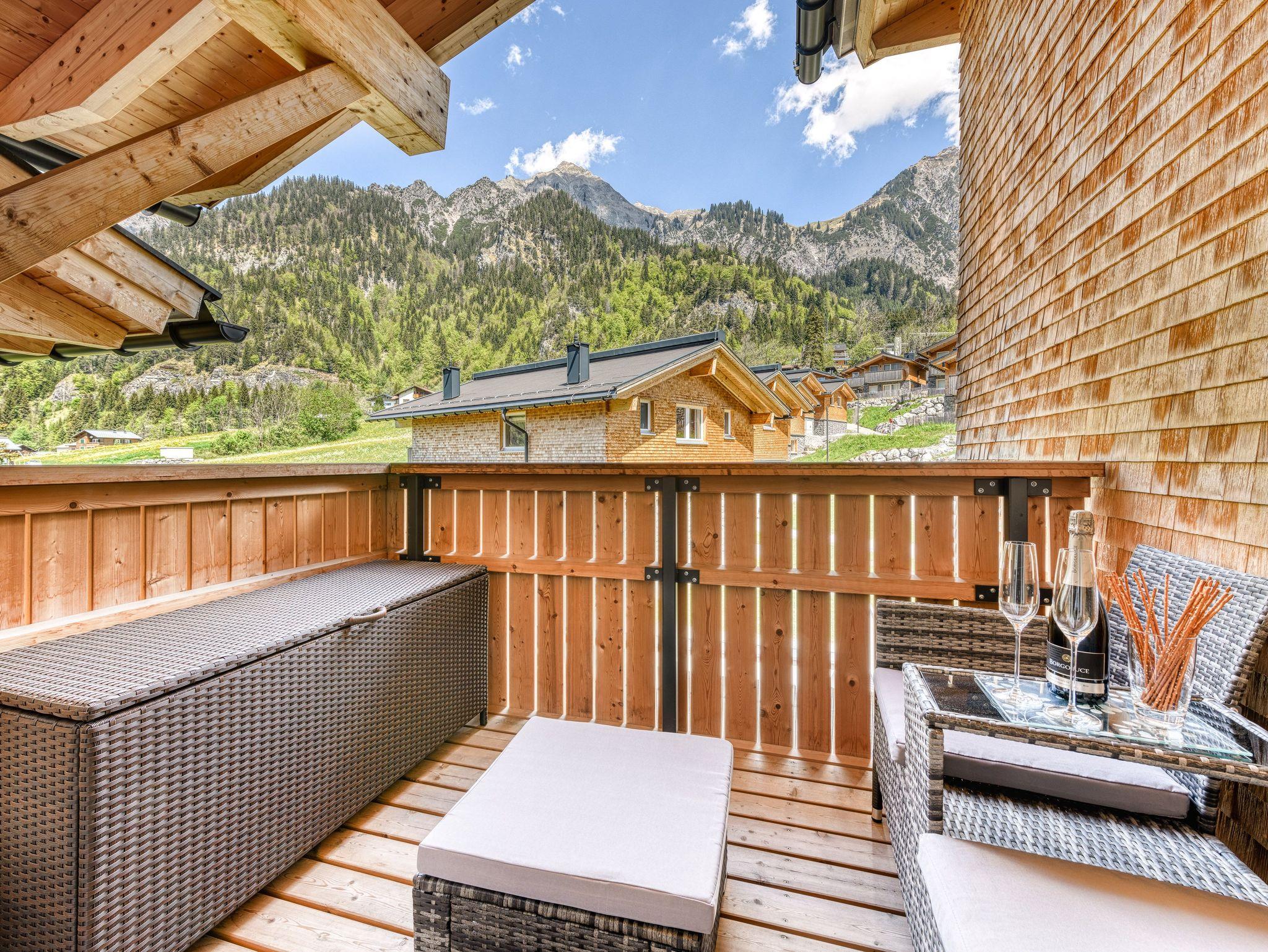 - Großer Westbalkon mit Tisch und Sitzgelegenheiten (herrlicher Bergblick).