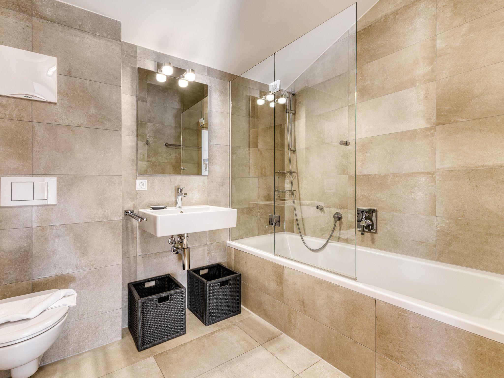 1 großes Badezimmer mit Badewanne