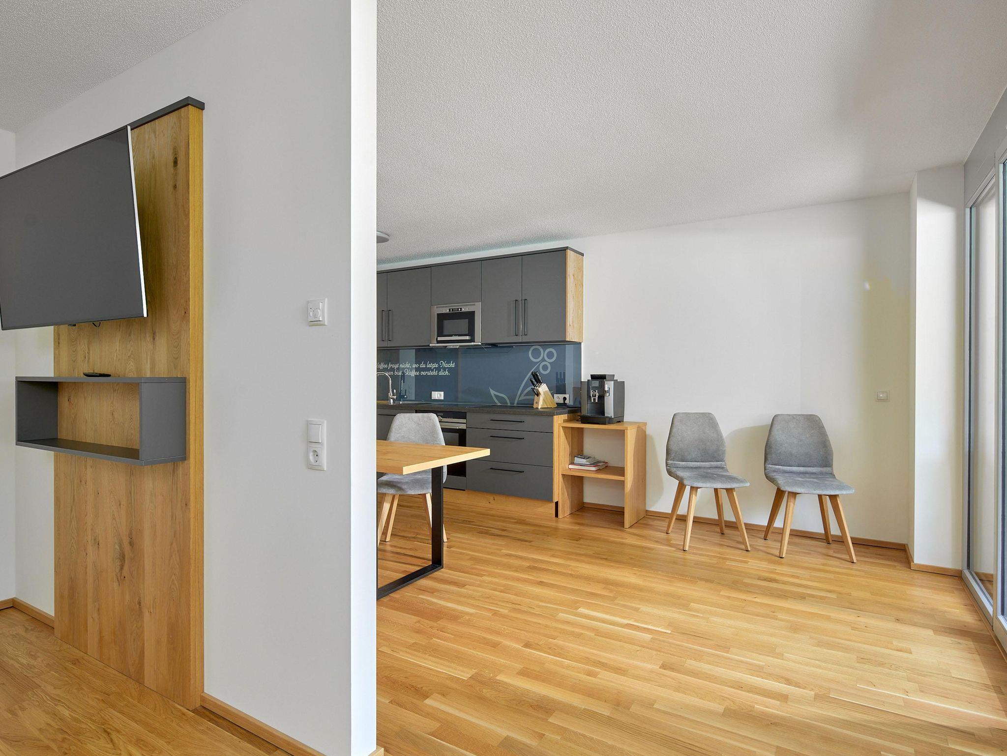 Willkommen im Zapfig Living Apartment 11, Deinem perfekten Rückzugsort für einen erholsamen Aufenthalt. Die 75 m² Unterkunft im 1.Stock bietet ein gemütliches Wohnzimmer inkl. ausziehbaren Kingsizebett mit Smart-TV, 2 Schlafzimmer (Kingsizebett+ausziehbares Einzelbett+Smart-TV) sowie eine voll ausgestattete Küche. Das Badezimmer verfügt über Dusche und WC. Genieße den Komfort einer eigenen Unterkunft und entspanne in alpiner Umgebung. Vom Balkon mit Liegenstühlen besteht Bergblick.