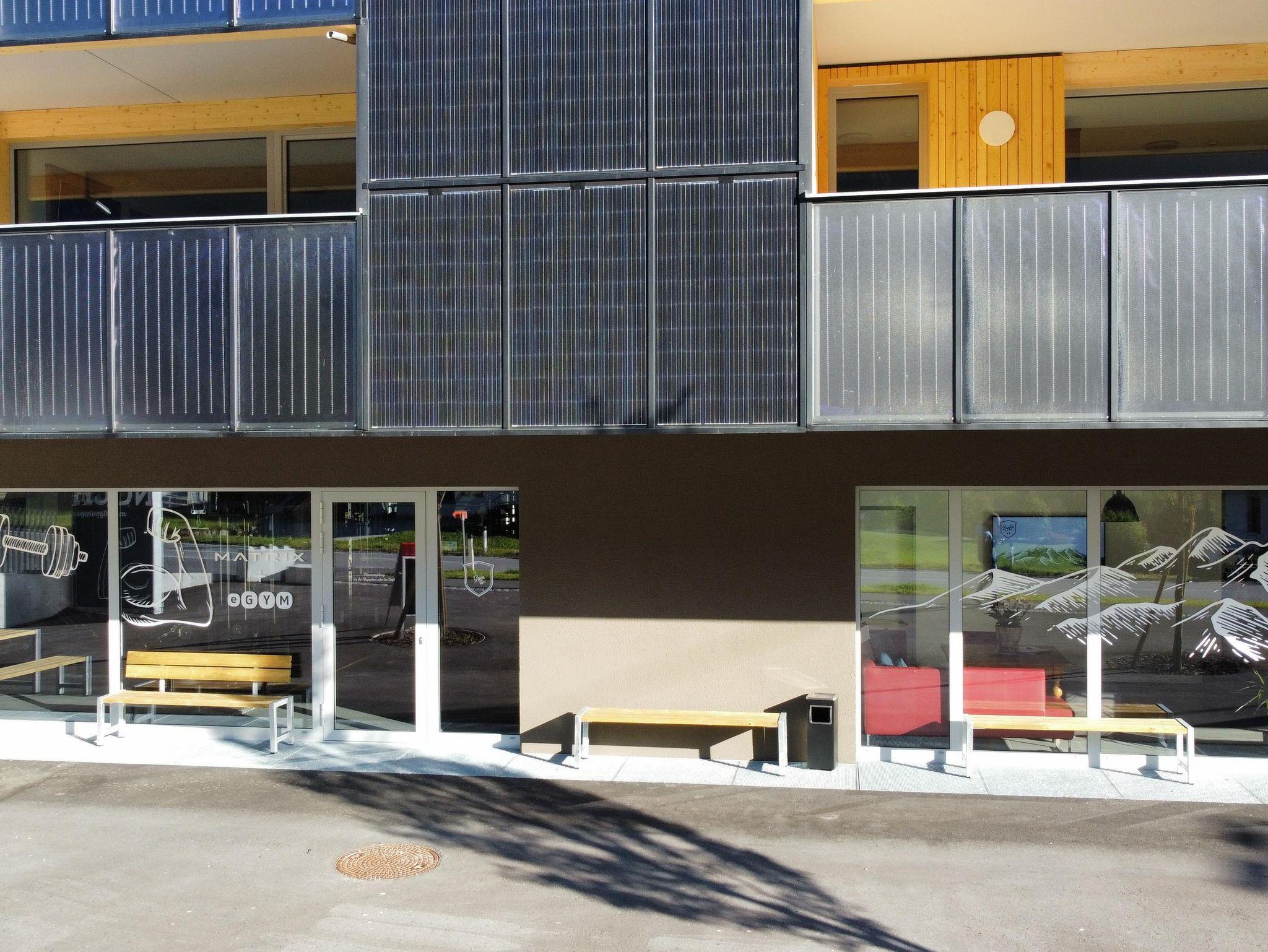 Im Erdgeschoss befindet sich ein modernes Fitnessstudio mit Sauna (Hausgäste bekommen -25% Rabatt) sowie ein 24h Automatenstore.