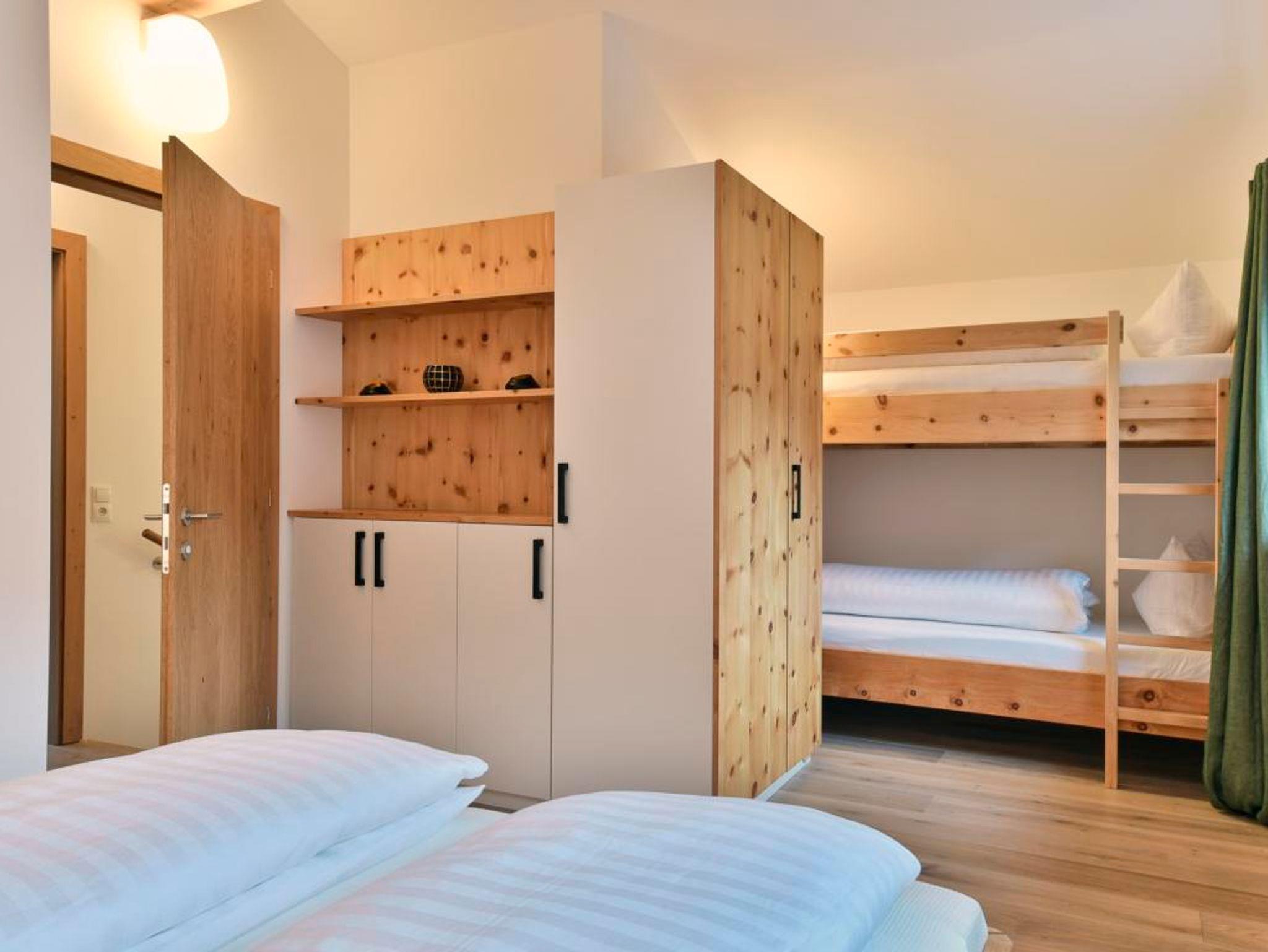 Die Schlafzimmer im Obergeschoss sind vom ortsansässigen Schreiner mit Zirbenmöbeln eingerichtet und bieten unseren Gästen einen erholsamen Schlaf. Ein besonderes Highlight des Chalets ist der Kinoraum im Untergeschoss.