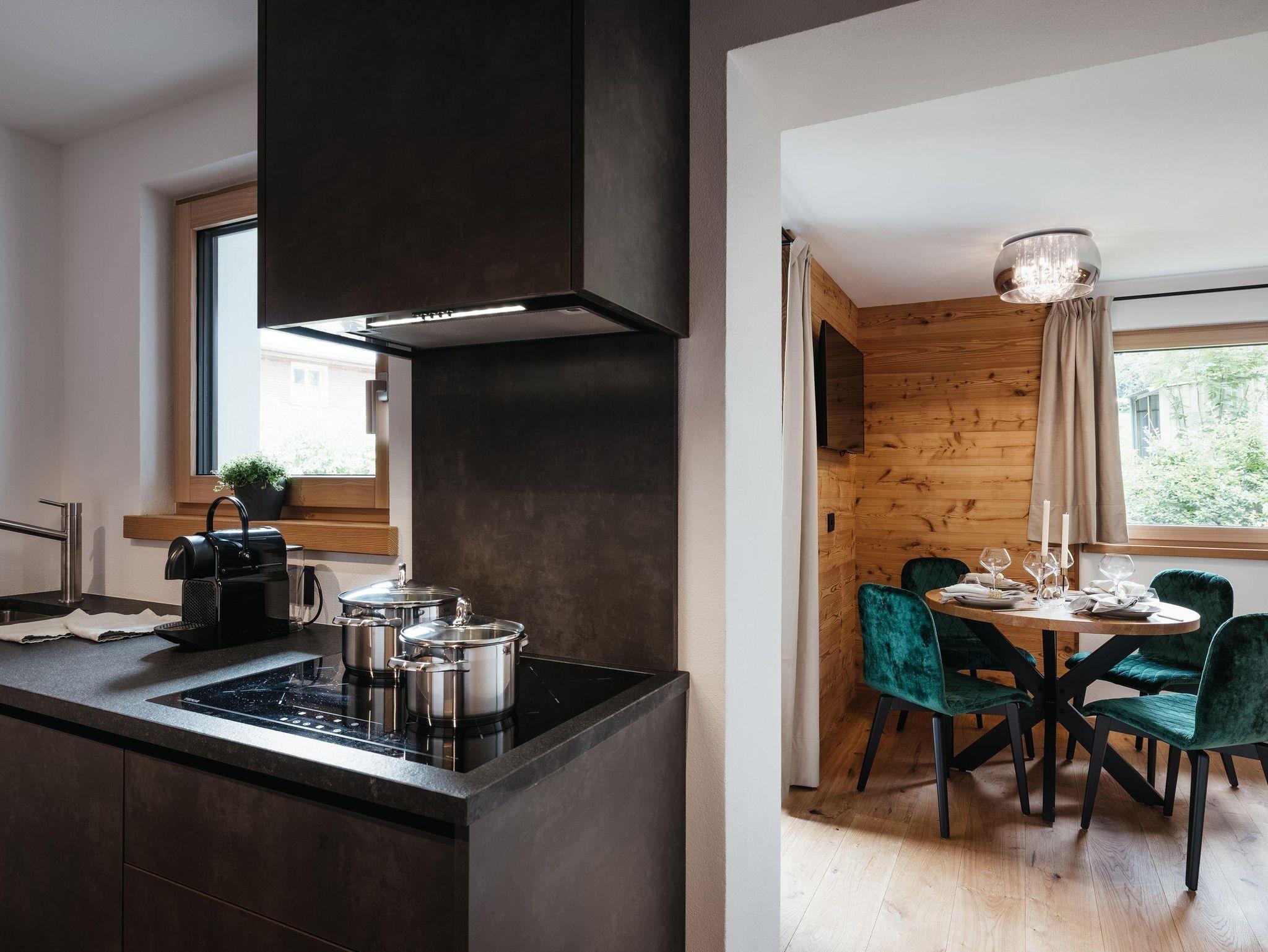 Die Ferienwohnung Zürs hat eine Größe von 42m² und verfügt über ein getrenntes Schlafzimmer mit Doppelbett sowie eine Panorama Glasfront und einer großen privaten Sonnenterrasse, die zum Entspannen und Relaxen einlädt. Einen Wohnbereich mit Panorama Esstisch und eine Doppelschlafcouch sowie 40‘‘ LED-TV laden zum Verweilen ein. Die vollausgestattete Design-Küche mit Induktionsherd, Spülmaschine, Kühl- und Gefrierschrank, Mikrowelle und Kaffeemaschine lässt im Urlaub keine Wohnwünsche offen.