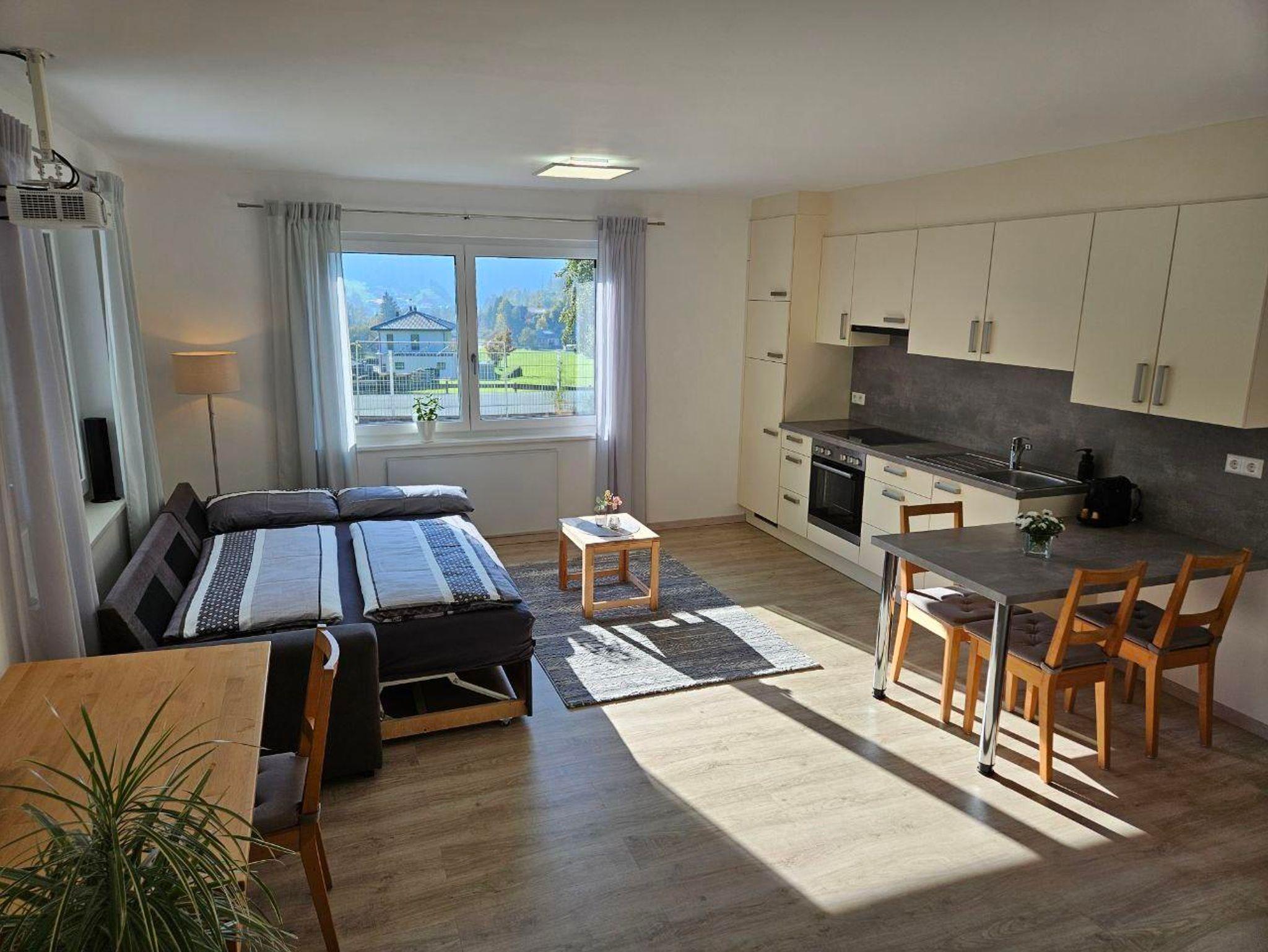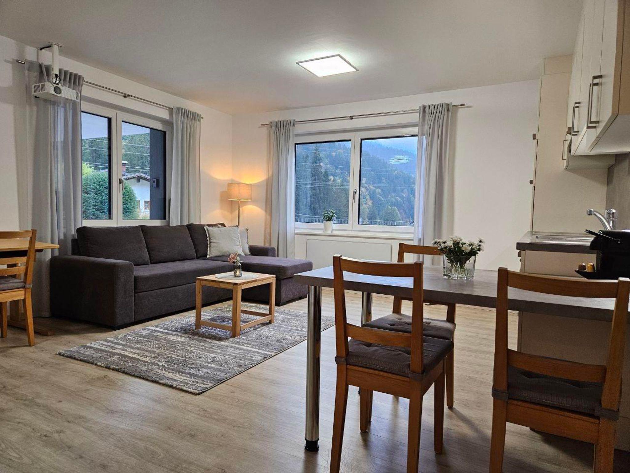 Zur Ausstattung gehören Bettwäsche und Handtücher, ein Fön, Skiaufhängung und Abstellmöglichkeit für E-Bikes, ein Beamer mit Leinwand sowie gratis WLAN.