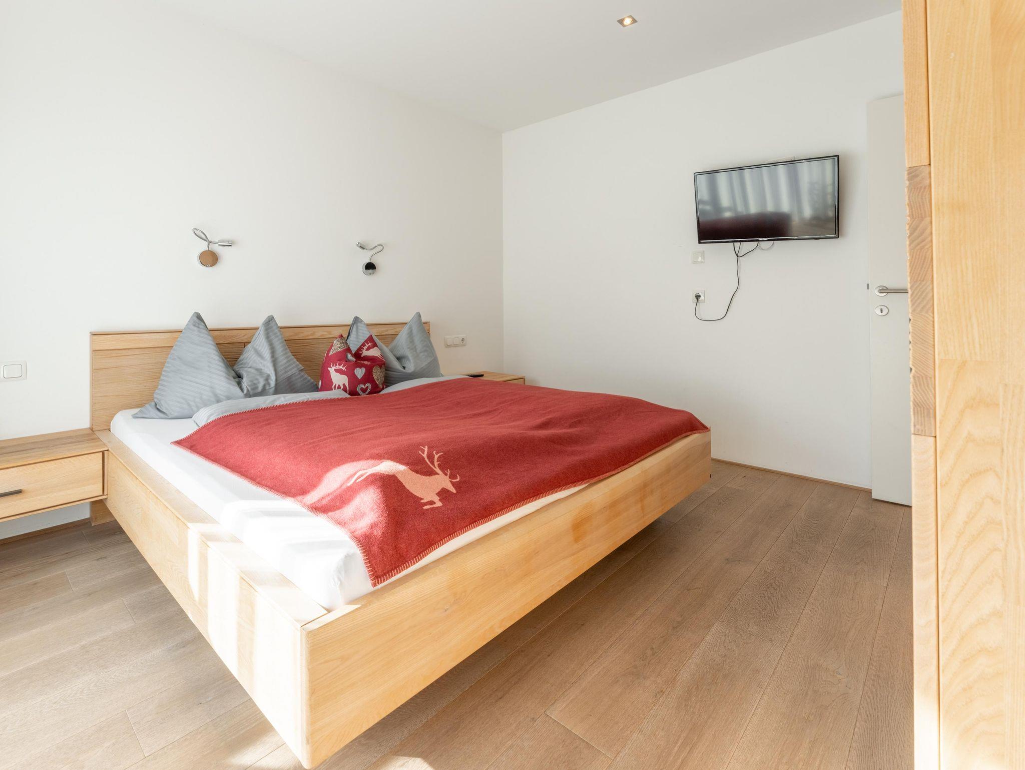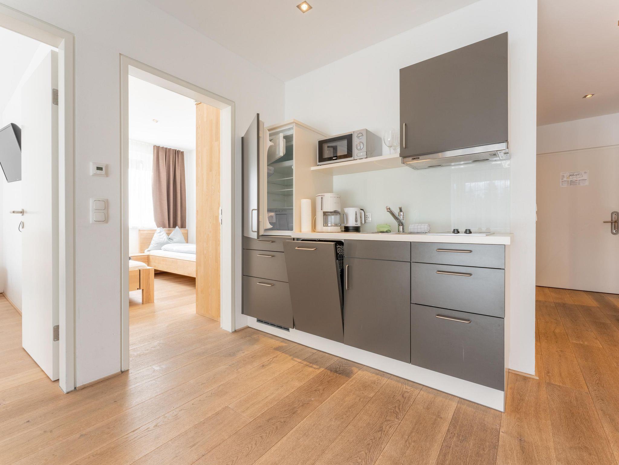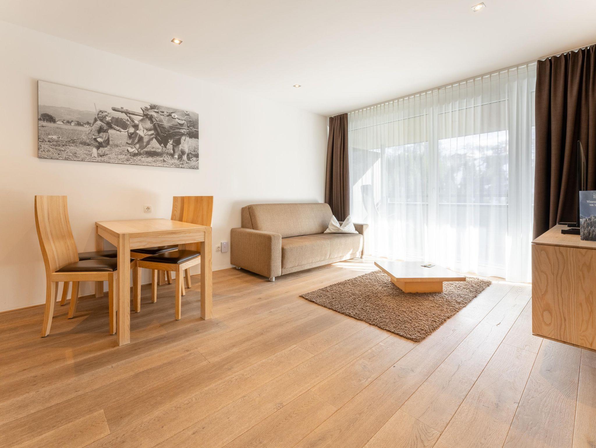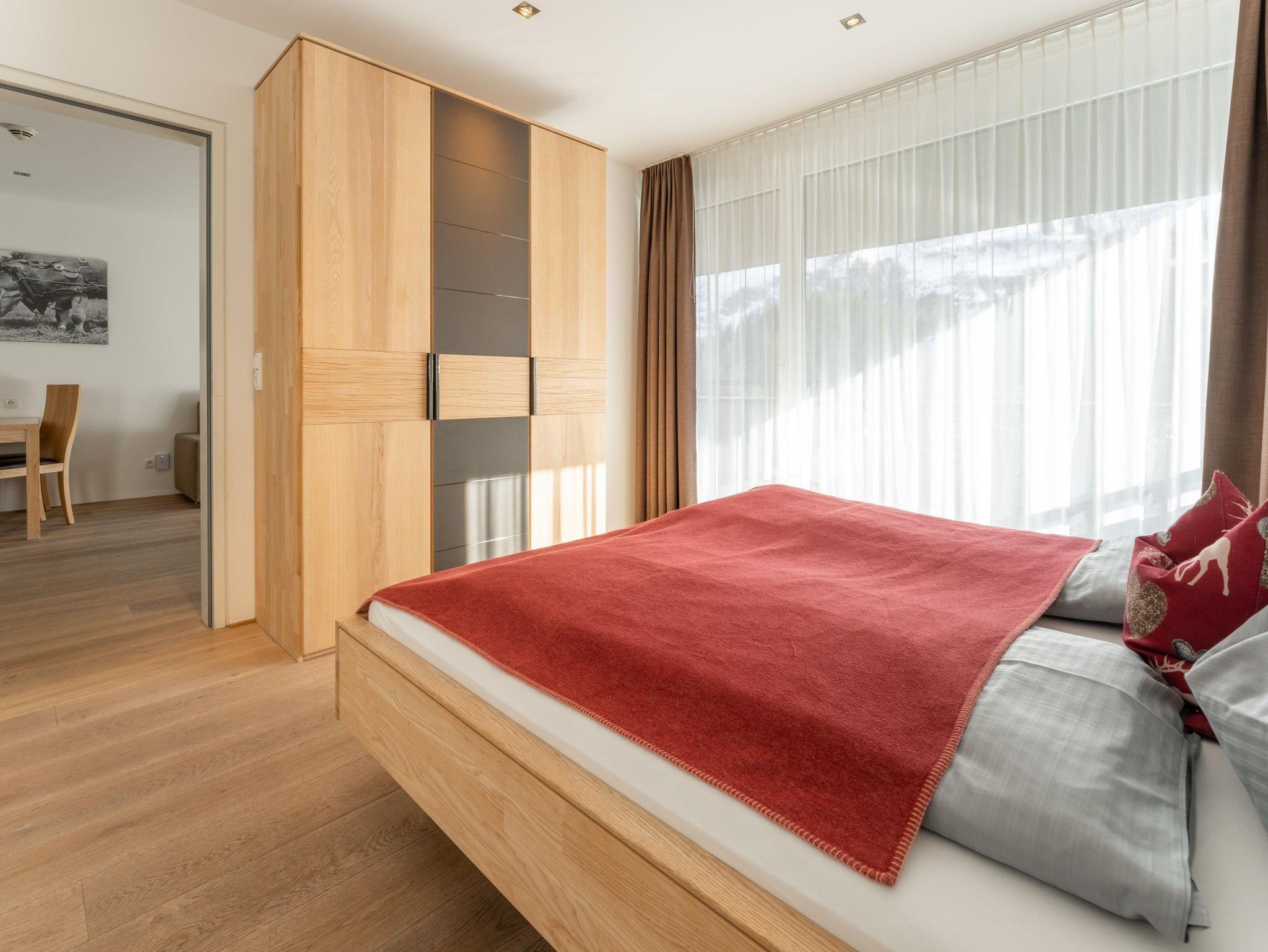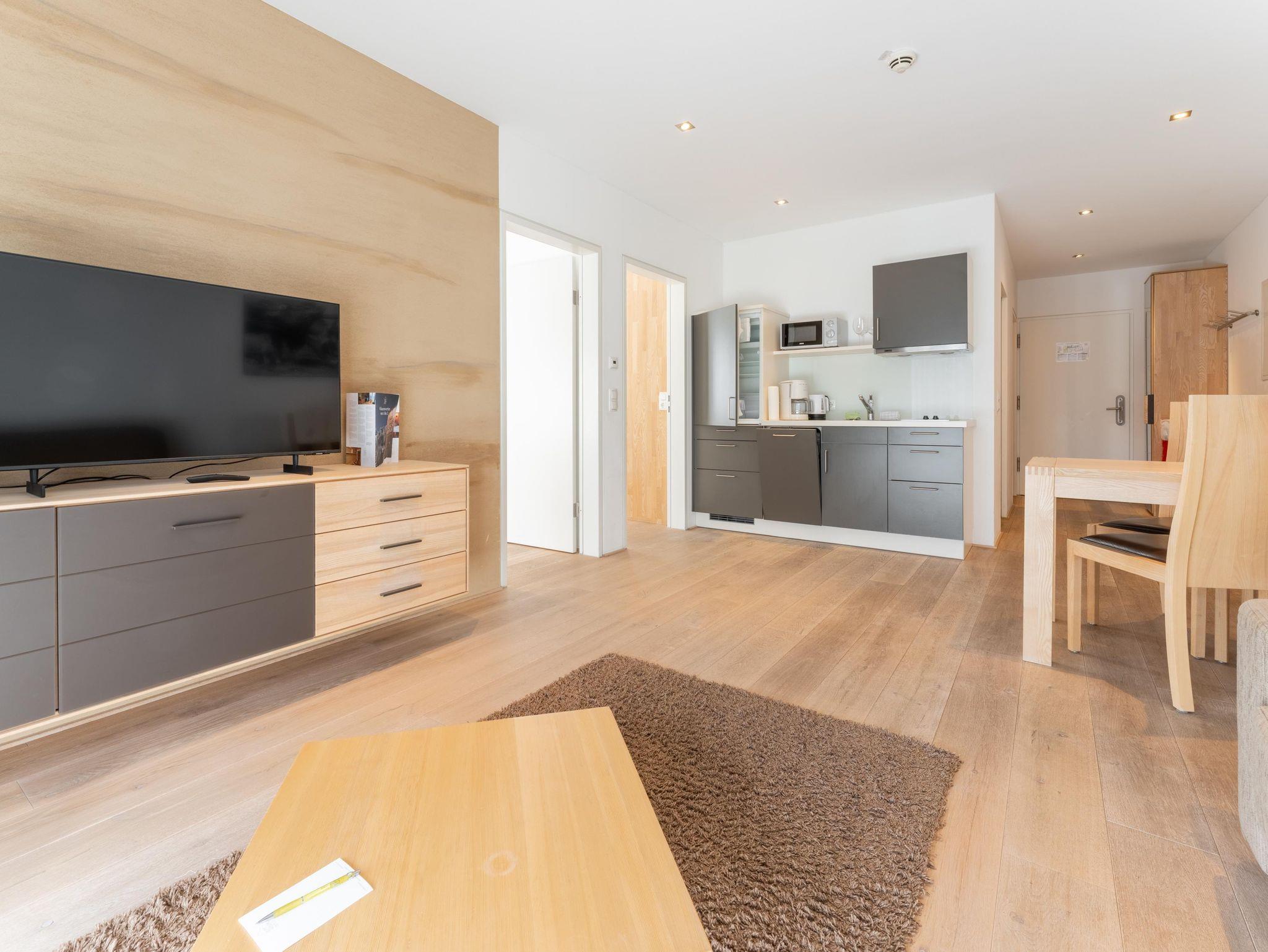Dieses moderne Apartment verfügt über eine große Terrasse mit Bergblick und zwei Schlaffzimmer. Das Wohnzimmer ist mit komfortablen Sofas und einem Flachbild-Sat-TV ausgestattet. Außerdem bietet das Apartment kostenfreies WLAN sowie eine komplett ausgestattete Küchenzeile und einen Essbereich. Eine tägliche Reinigung und Bademäntel werden auf Anfrage gegen Aufpreis angeboten.Das Appartement steht Ihnen ohne Verpflegung zur Verfügung! Frühstück von unserem reichhaltigen Frühstücksbuffet ist zum Aufpreis von €21,-- buchbar. Die Endreinigungsgebühr von 60,--€ ist im Preis inkludiert und wird vor Ort verrechnet!