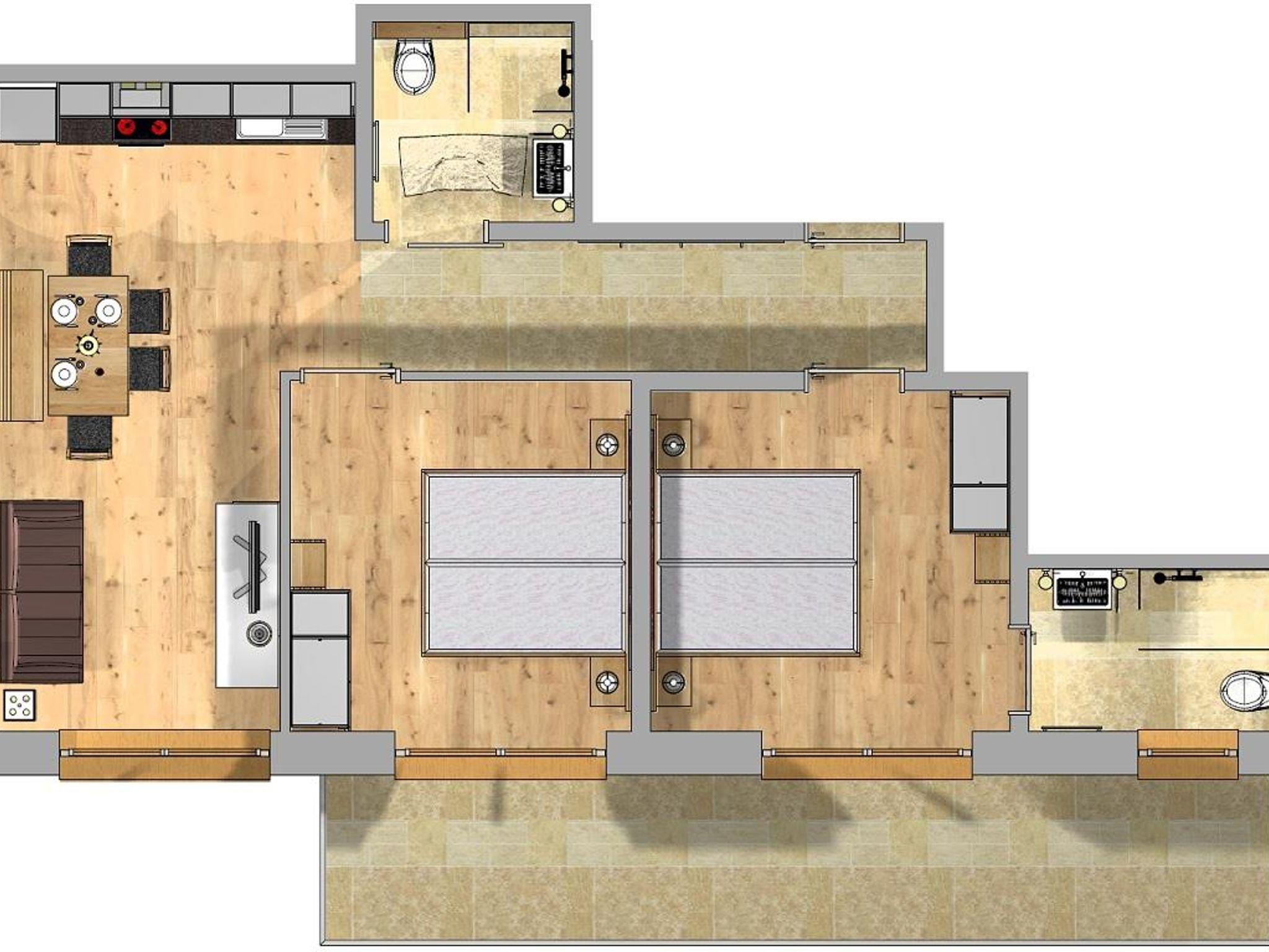 In der Ferienwohnung befinden sich 2 Doppelschlafzimmer mit je einem Bad. Komplett ausgestattete Küche mit hochwertigen Elektrogeräten - Backrohr, Herd, Kühlschrank mit Tiefkühlfach, Spülmaschine, Nespresso-Kaffeemaschine und Wasserkocher. TV in jedem Schlafzimmer und in der Küche. Gratis W-Lan.