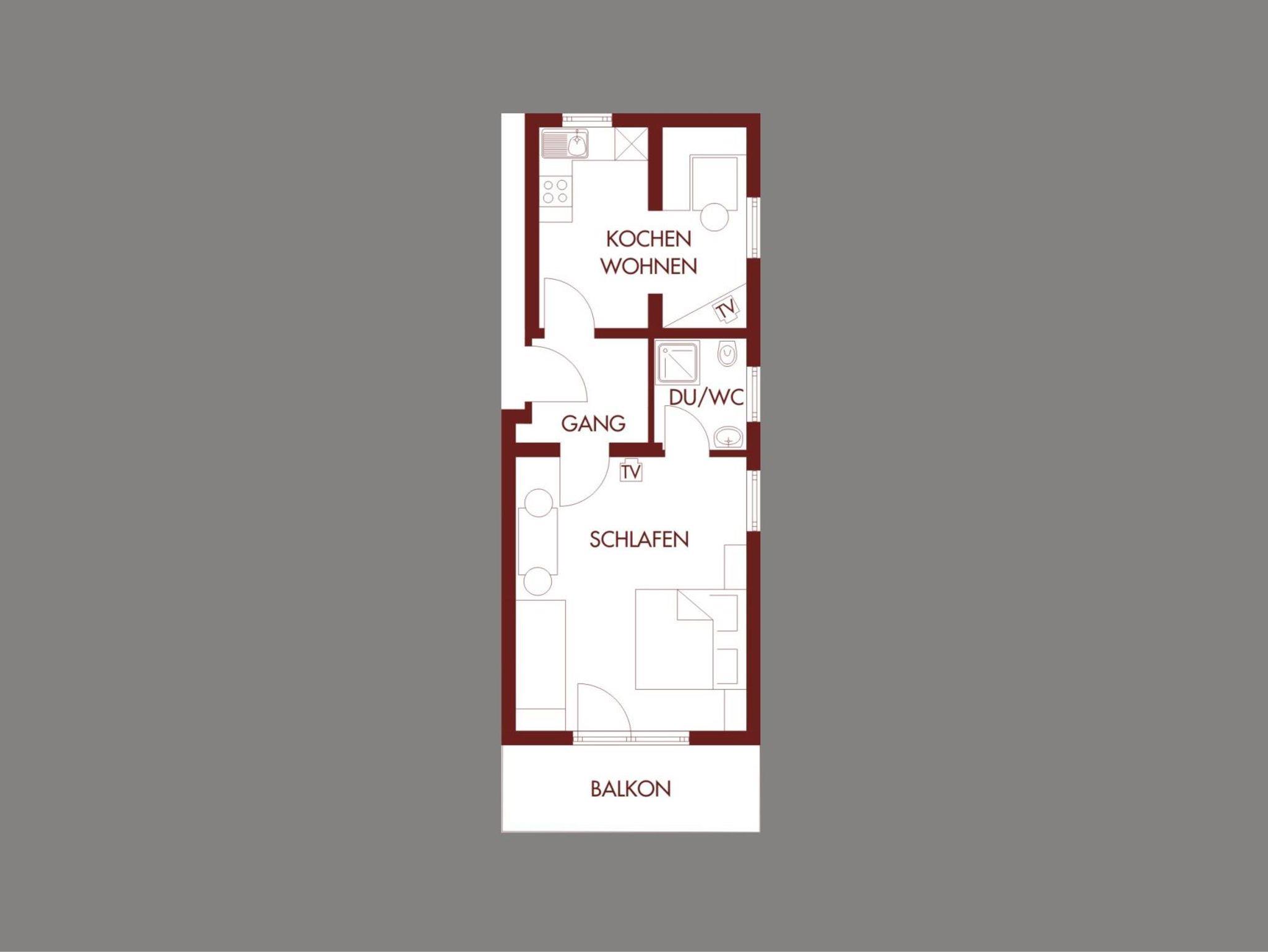 2-Personenwohnung mit Balkon, 41 m², Zustellbetten für 2 Personen möglich