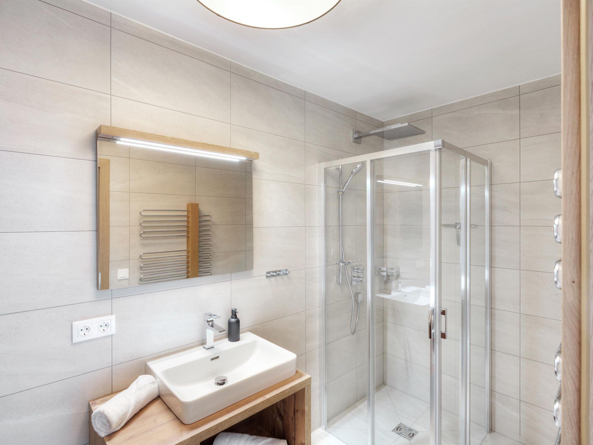 • Badezimmer mit Regendusche, beheizter Handtuchhalter
