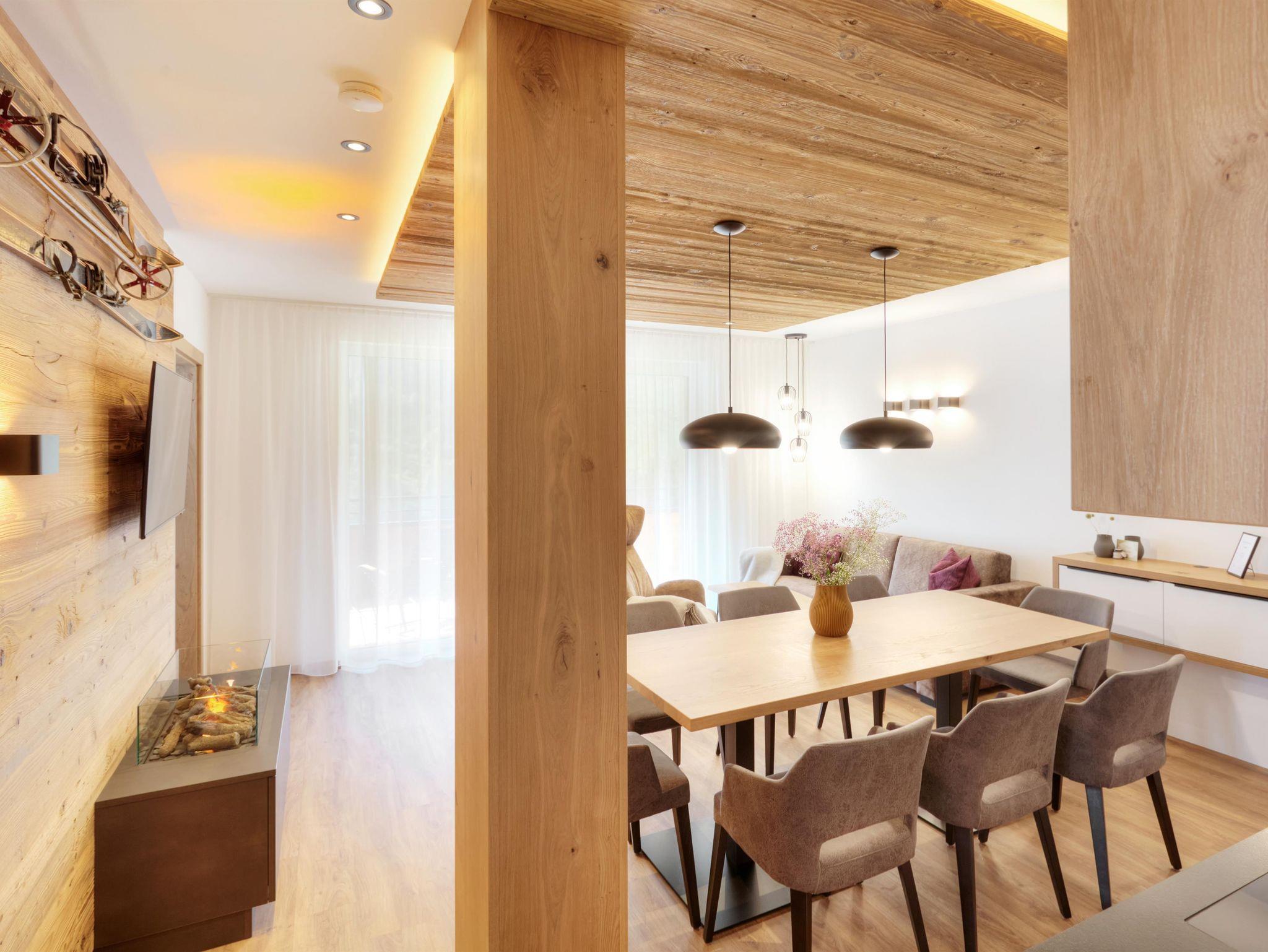 Die offenen Räume, veredelt mit Täfelungen laden ein zum gemütlichen Verweilen nach erlebnisreichen Urlaubstagen. Ob sportbegeistert oder ruhesuchend, ob kulinarisch oder kulturell interessiert, das Angebot in und um Damüls ist vielseitig. Durch die südseitige Ausrichtung der Apartments genießen Sie von morgens bis abends einen spektakulären Blick in die Bergwelt rund um Damüls.