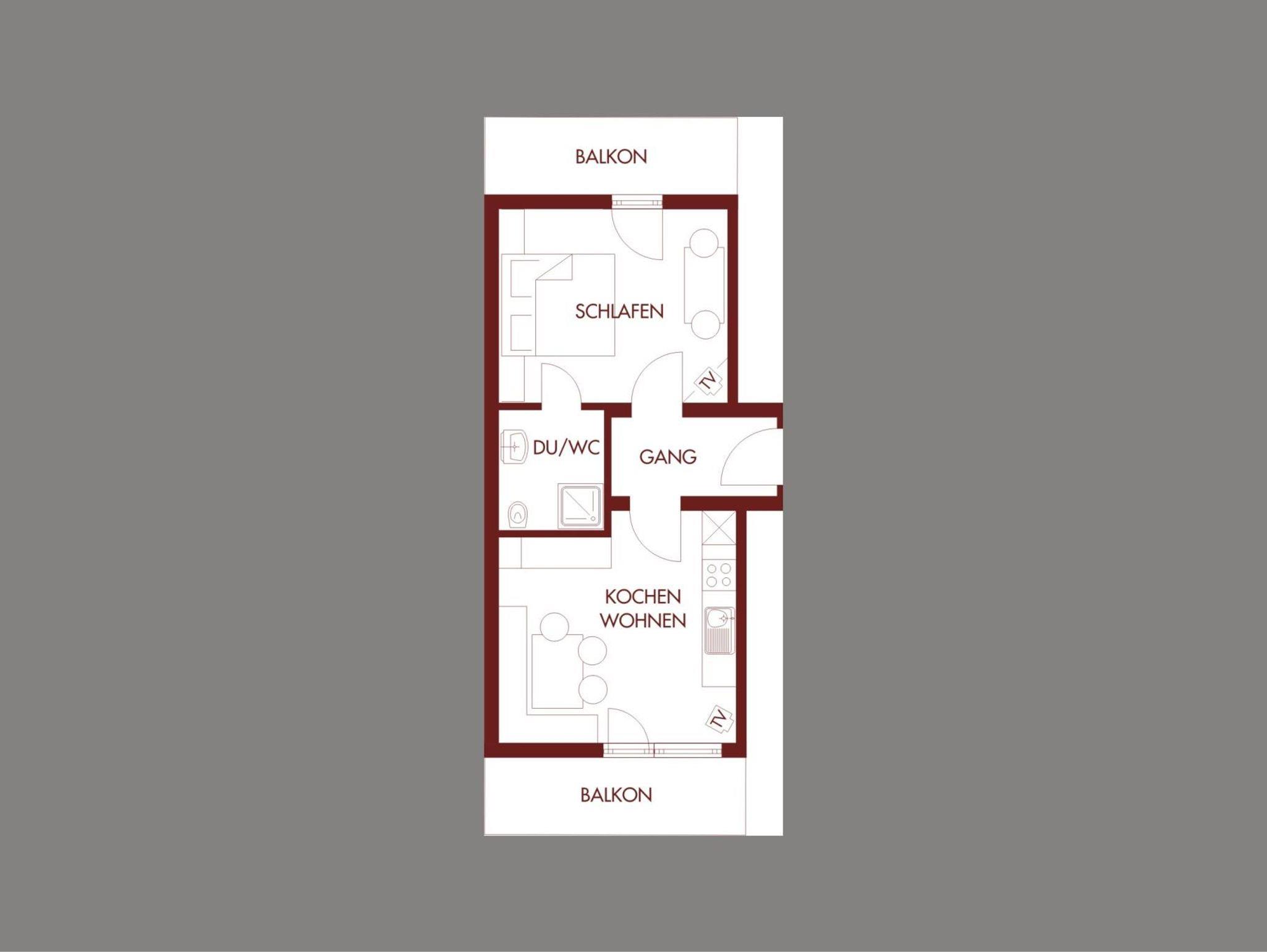 2-Personenwohnung mit Balkon, 38 m², Zustellbett für 1 Person möglich