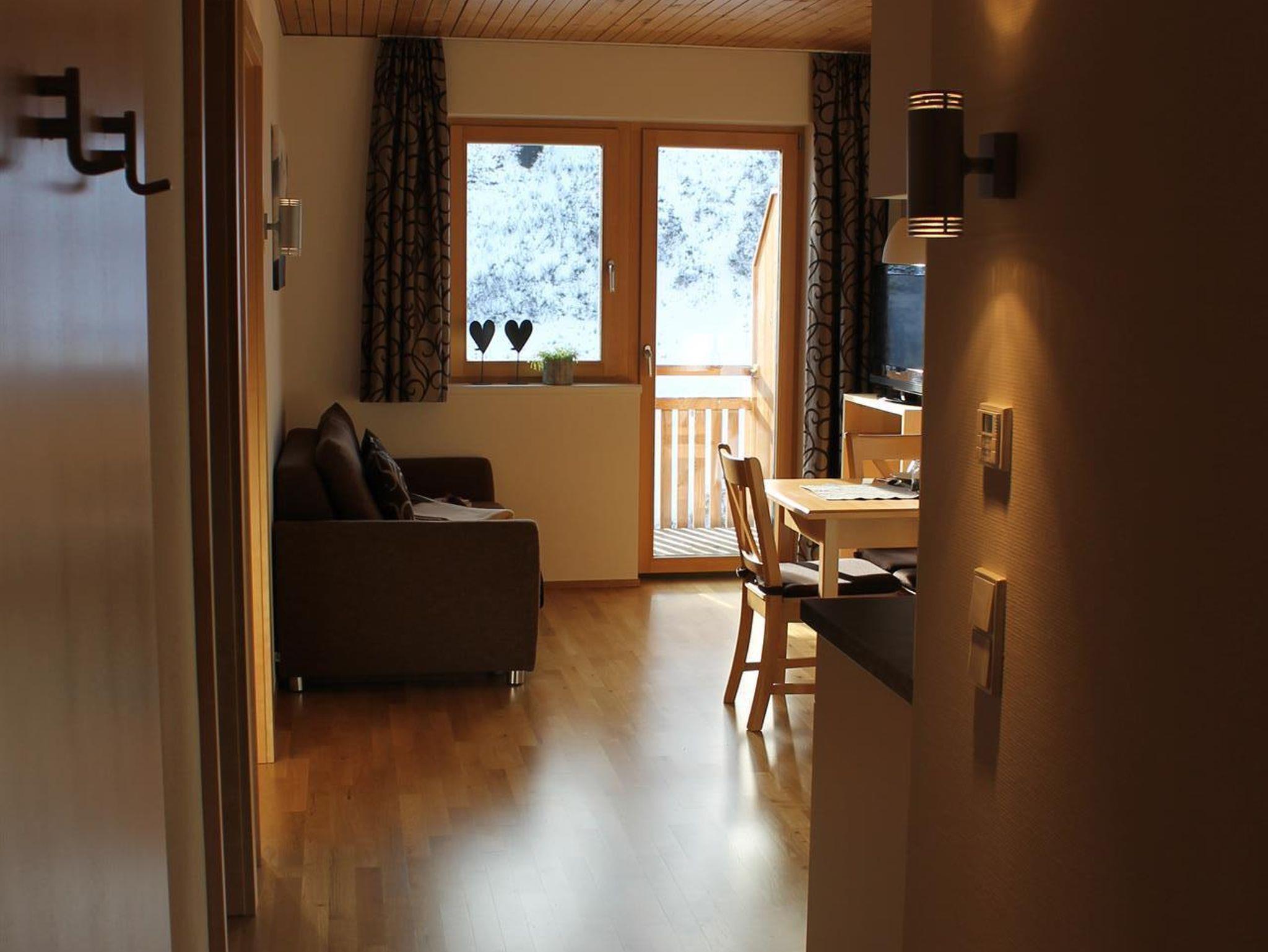 Unser Appartement berg.welt lädt zu behaglichem Wohnen und Entspannung vom Alltag ein. Heimische Tischlerarbeit aus Birkenholz, ein Eichenparkettboden und warme Farben bestimmen die Atmosphäre des Appartements und machen die berg.welt zu Ihrem Urlaubszuhause. Die Wohnung befindet sich auf der zweiten Etage und bietet Platz für 1 - 4 Personen. Sie verfügt über 1 Schlafzimmer mit Doppelbetten, einen gemütlichen Wohn-Essbereich mit ausziehbarer Schlafcouch, eine voll ausgestattete Küche mit Spülmaschine, Tiefkühlschrank, Mikrowelle, Backrohr, Kaffeemaschine, Wasserkocher etc., Badezimmer mit Dusche/WC, Safe und einen sonnigen Südbalkon. Wohlfühlen garantiert, lautet die Devise in Ihrer berg.welt. Schließen Sie die Tür, lassen Sie den Alltag draußen und genießen Sie!