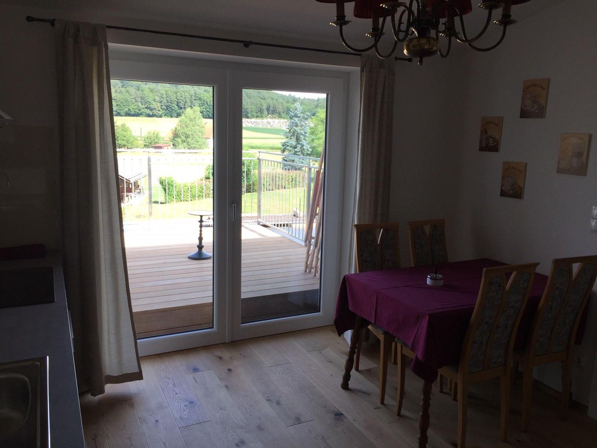 Der Waldblick ist eines unserer Apartments mit ca. 60m2. Das Apartment befindet sich im Neubau und im 1. Stock und ist mit Dusche, seperatem WC, Sat/TV, Vorraum, Wohnküche und zwei seperaten Schlafzimmern mit Boxspringbetten ausgestattet. Das Apartment hat auch einen großzügige Terrasse mit Blick auf den Wald und in den Garten wo sich unser überdachter und bezeitzer Pool befindet.
