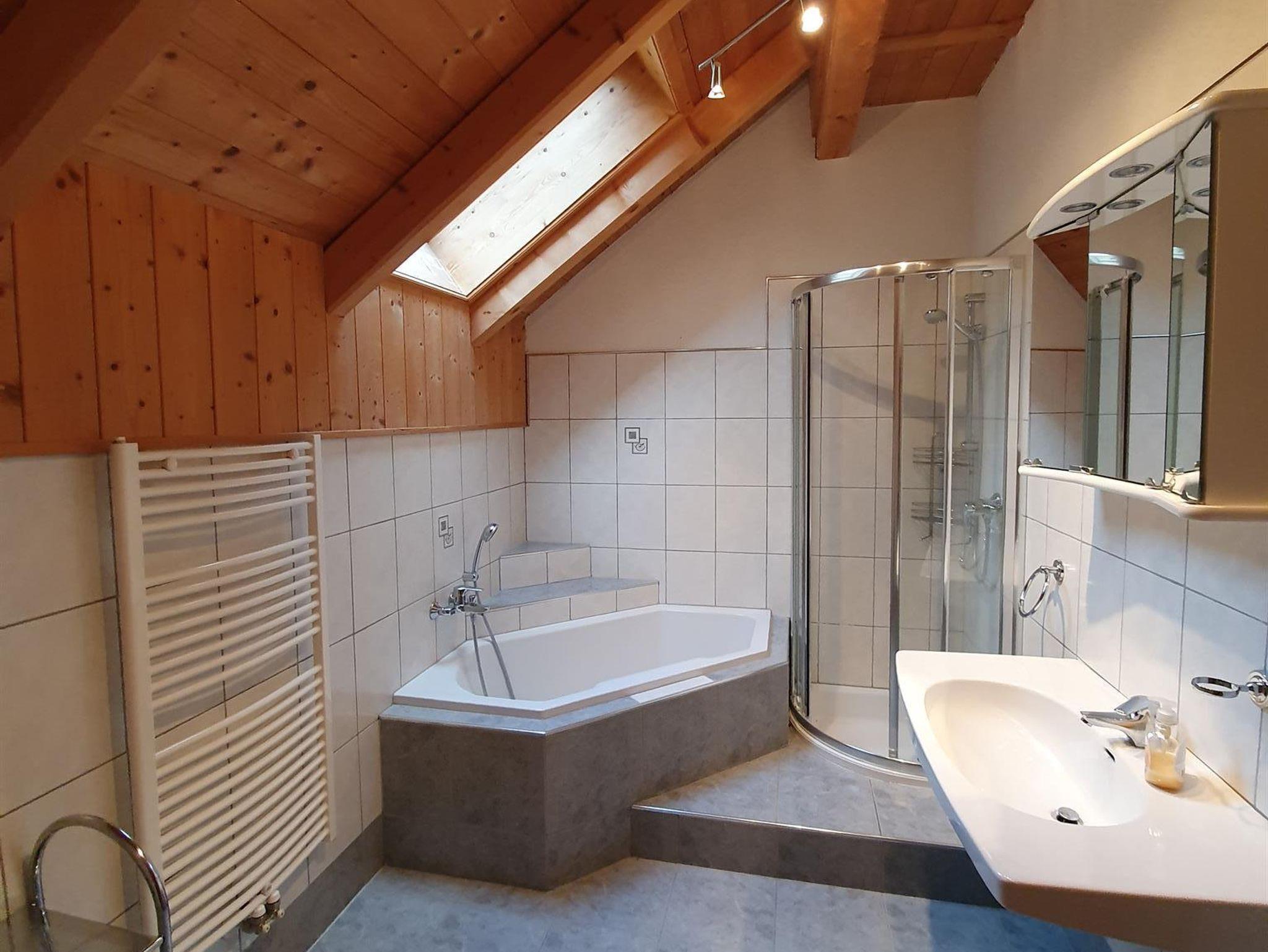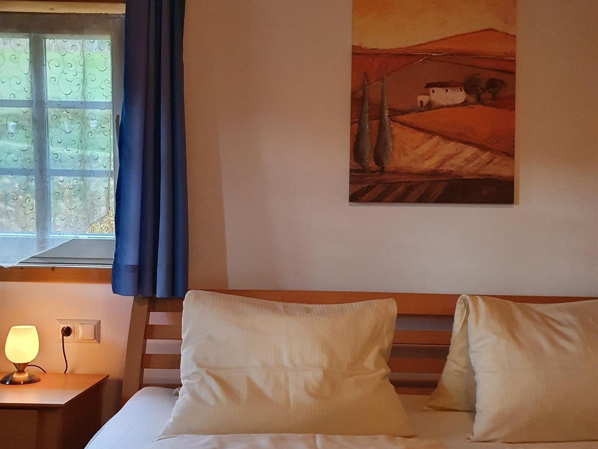 Die Ferienwohnung Morgensonne befindet sich im Bauernhaus, Doppelzimmer mit Einzelbett oder Gitterbett, Zimmer mit Stockbett, Wohnküche, WC, Badewanne/Dusche, TV und Balkon.