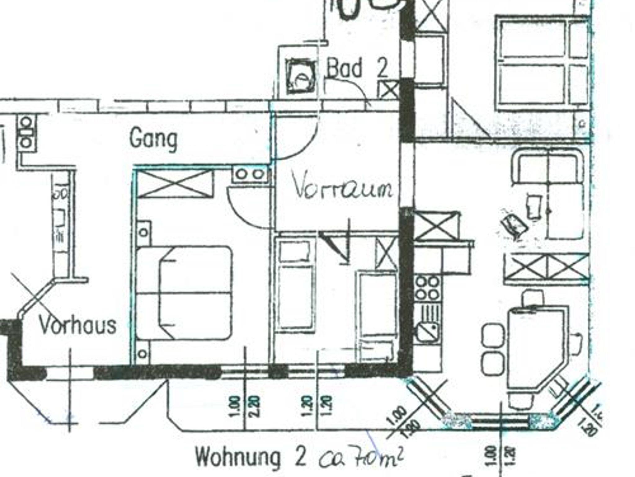 Ausgestattet mit 1 Wohnung mit 3 Schlafzimmern u. Wohnküche bis 6 Personen und 1Wohnung mit einem Wohnschlafraum (1 Doppelbett und mit 1 Zusatzbett (Schlafcouch) für 2-3 Personen.