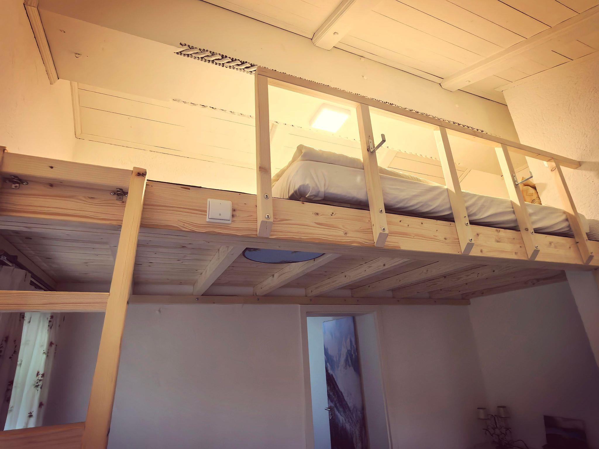 Auf der Galerie (in 2 Meter Höhe) im Wohnbereich befindet sich ein weiteres Doppelbett (nur für Personen ab 6 Jahren, ELTERN HAFTEN FÜR IHRE KINDER -Maximalbelastung: 200 kg).