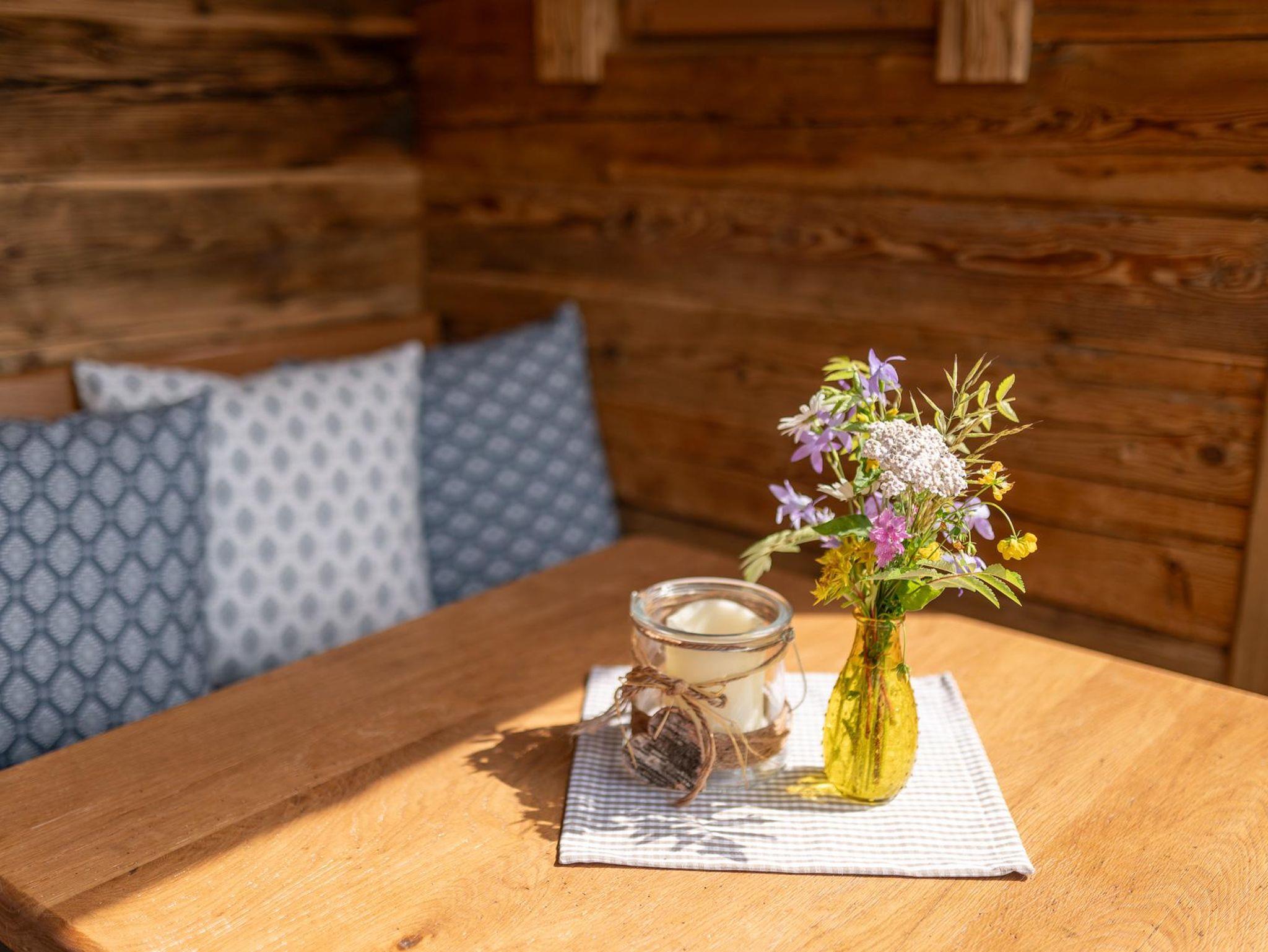 Gerne wird täglich unser beliebtes á la carte Almfrühstück, mit allerlei selbstgemachten Köstlichkeiten und diversen Schmankerln aus der Region, direkt ins Chalet serviert.