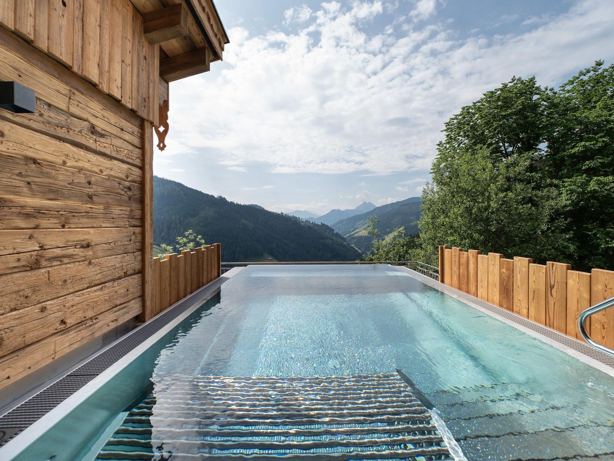 Die Besonderheit des Highking Chalets wird ein neuer 5 x 3 Meter großer beheizter Infinity Outdoor Pool mit Whirlliegen, der Dich zu exklusiven Entspannungs-Momenten und einem atemberaubenden Blick einlädt.