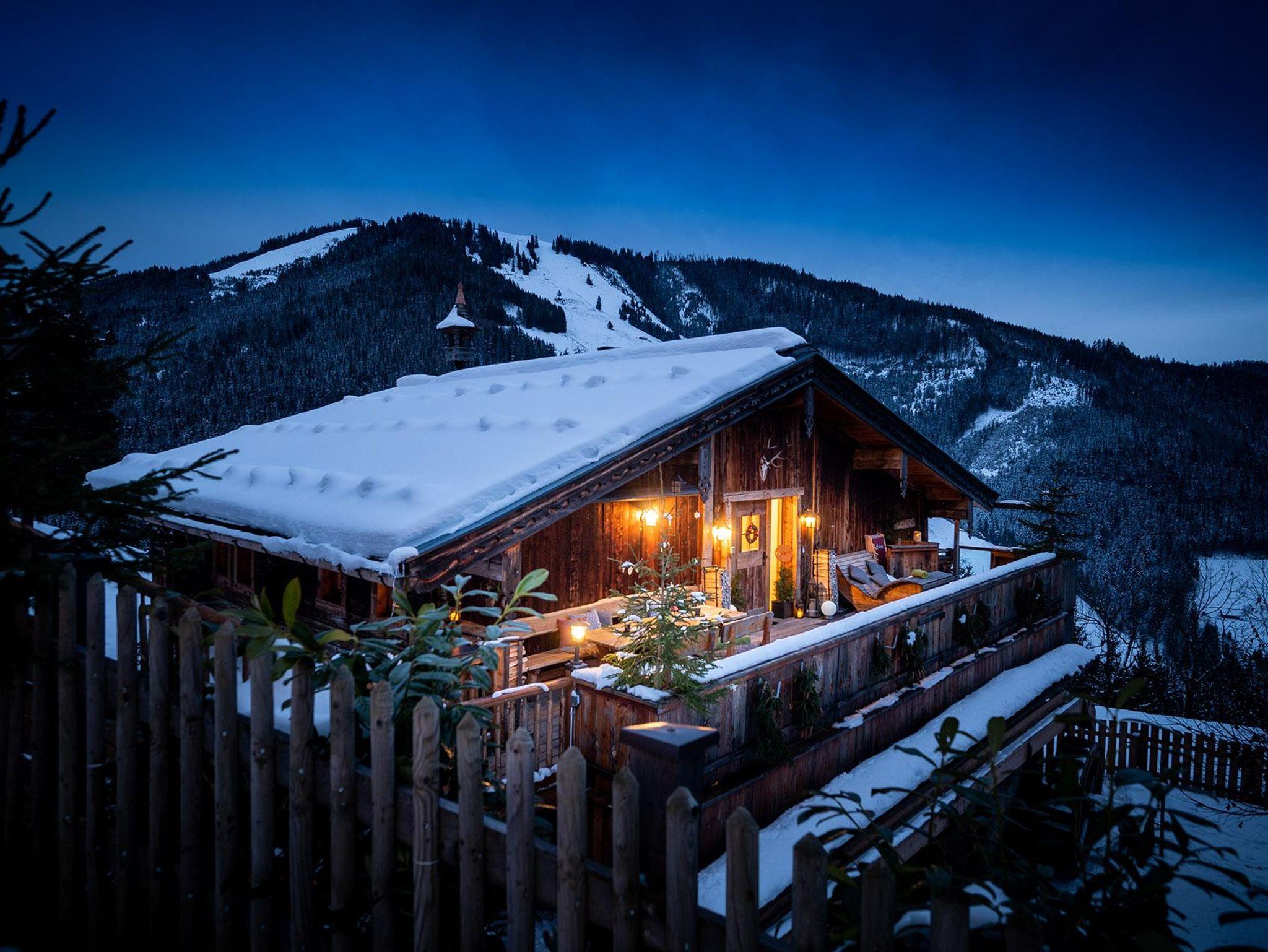 In einer wunderschönen Lage, abseits von allem Trubel, liegt auf 1.200 Meter Seehöhe mit Blick auf das Hochkönigmassiv das Highking Chalet Grünegg.