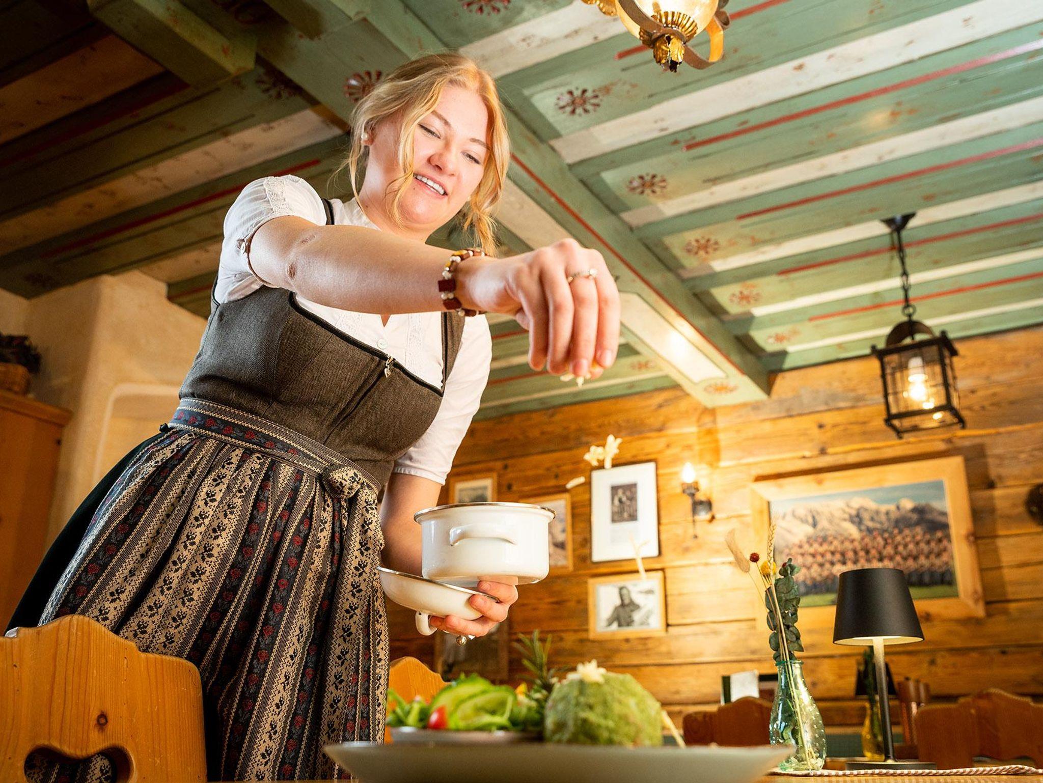 Gerne wird täglich unser beliebtes á la carte Almfrühstück, mit allerlei selbstgemachten Köstlichkeiten und diversen Schmankerln aus der Region, direkt ins Chalet serviert.
