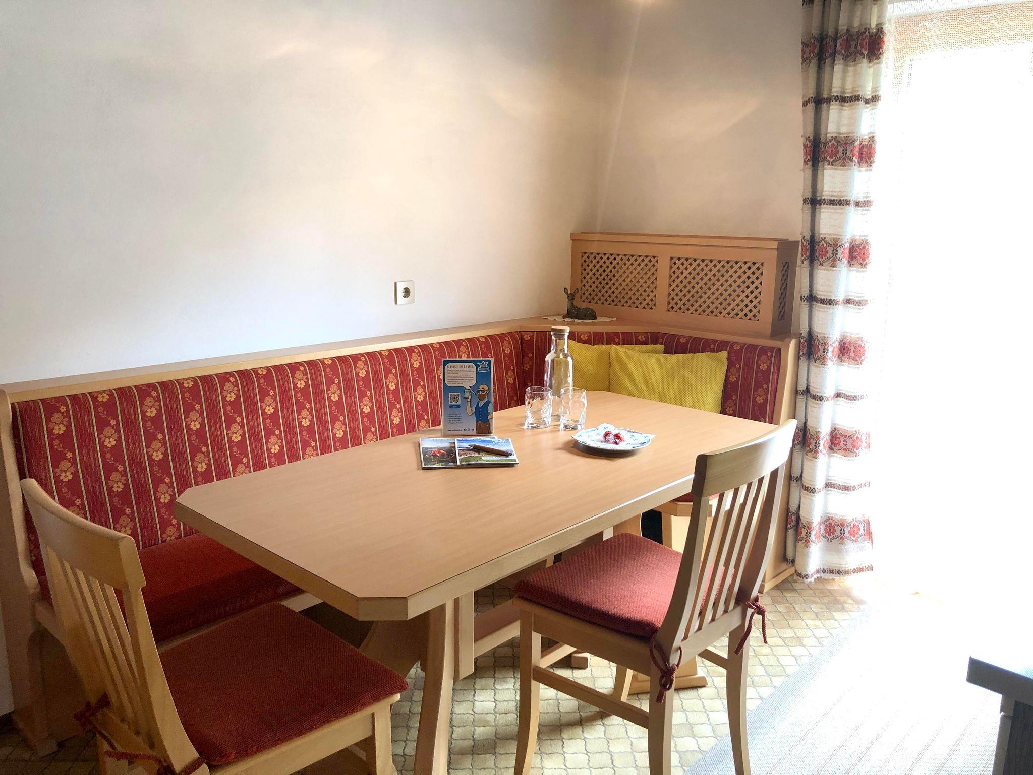 Kleiner Bauernhof , zentral gelegen , 2 Ferienwohnungen mit Wohnküche, 1-2 Schlafzimmer, 2 E-Platten ( kein Backofen ) Mikro , Kaffeemaschine Geschirrspüler , Radio , Kabel TV und Balkon. Sowie 1 Doppel- und 1 Dreibettzimmer mit Dusche/WC , TV , Radio , Kühlschrank und Balkon, Schuhtrockner . Wander bzw. Schibushaltestelle direkt vorm Haus . Skiabfahrt bis zum Haus.
