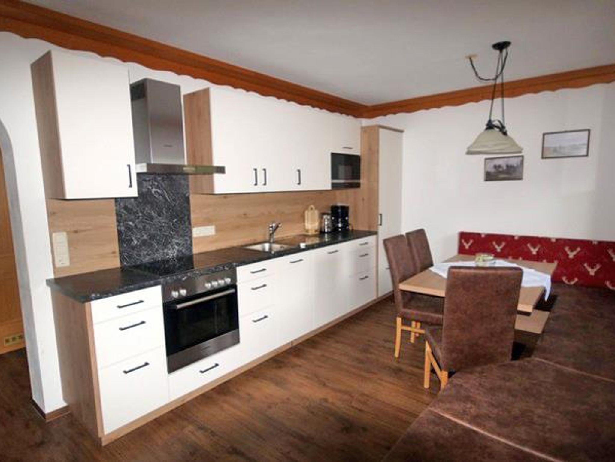 Wohnküche (Geschirrspüler, Kabel-TV, Balkon), Doppel- und Dreibettzimmer, Fußbodenheizung, Duschraum, WC, direkt an der Skischaukel, ruhige Lage. Skischulnähe.