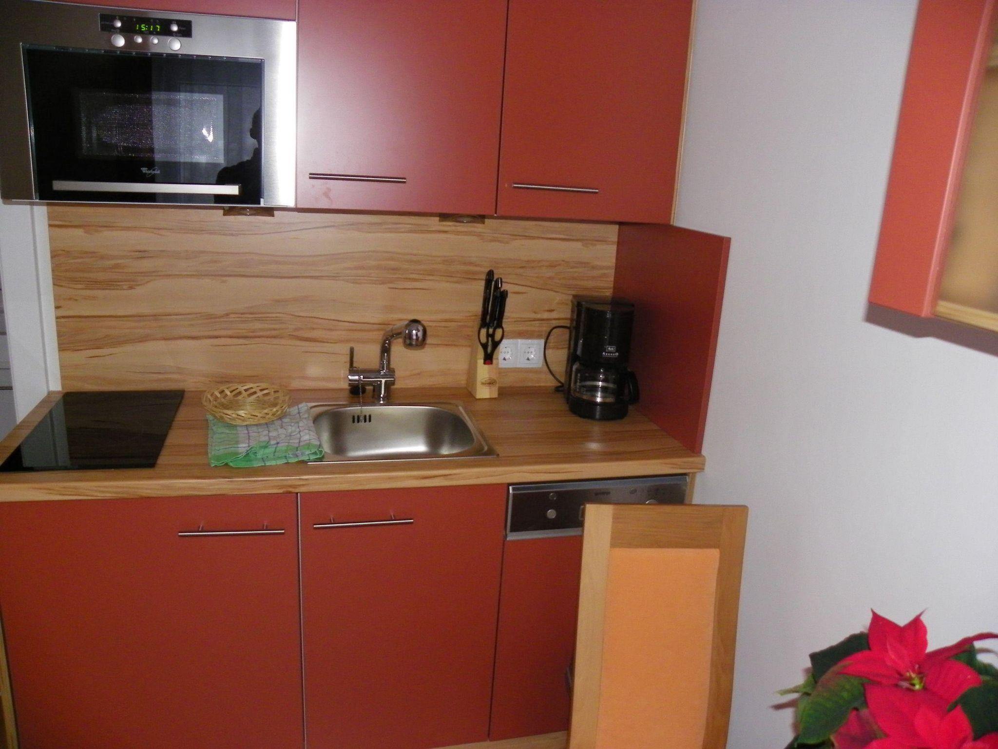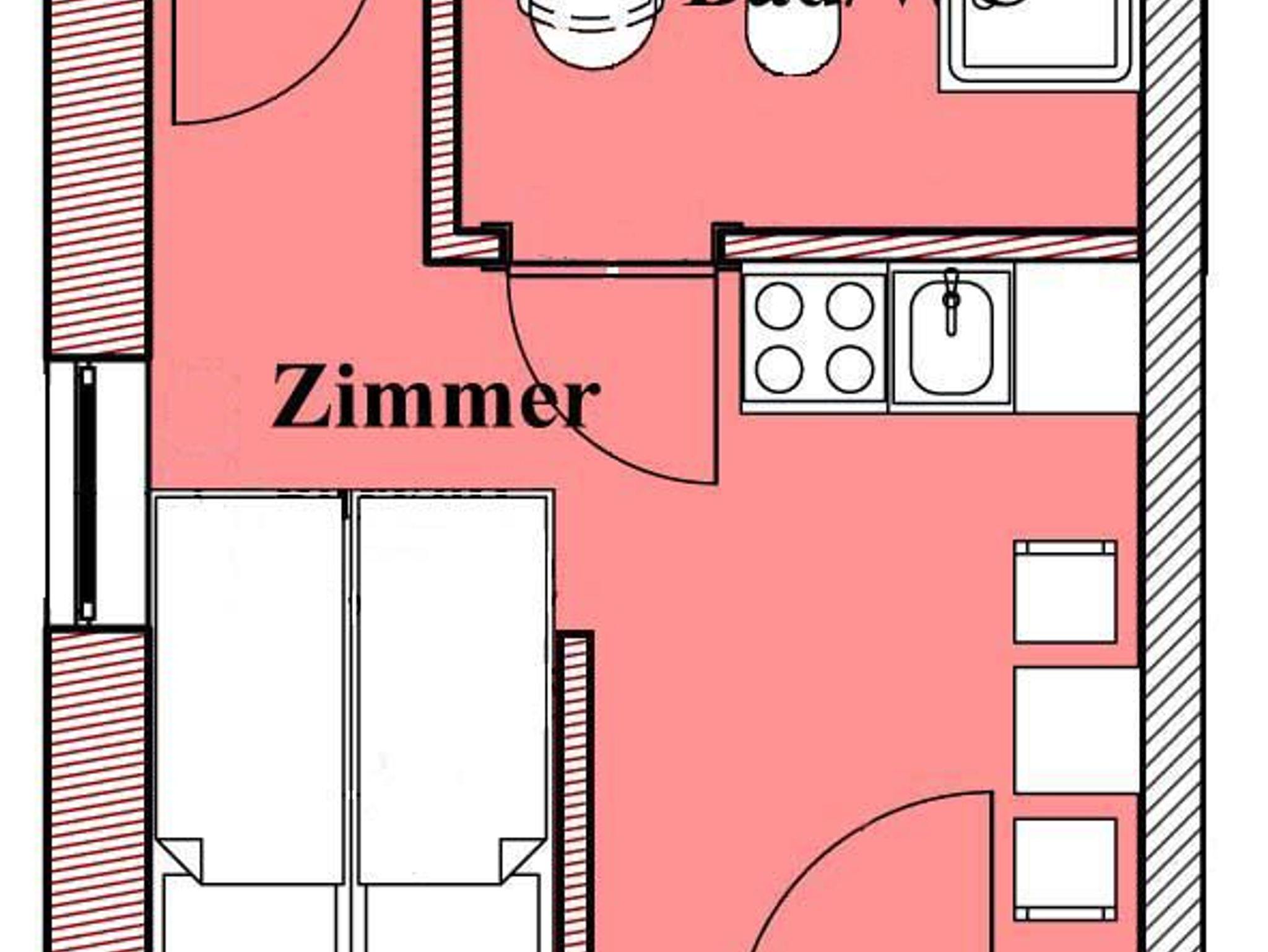 ~ 17 m2 für max. 2 Personen. Wohnung in einem Raum. Unsere kleinste Wohnung. Gemütliches Doppelbett. Ein kleiner Küchenblock mit 2-Plattenherd, Mikrowelle, Kühlschrank, Geschirrspüler und Kaffeemaschine. Gemütliche Essgelegenheit, kleiner Raumteiler mit Stauraum und Sat-TV. Bad mit Dusche, Waschbecken und WC. Wohnung hat einen eigenen Balkonzugang.