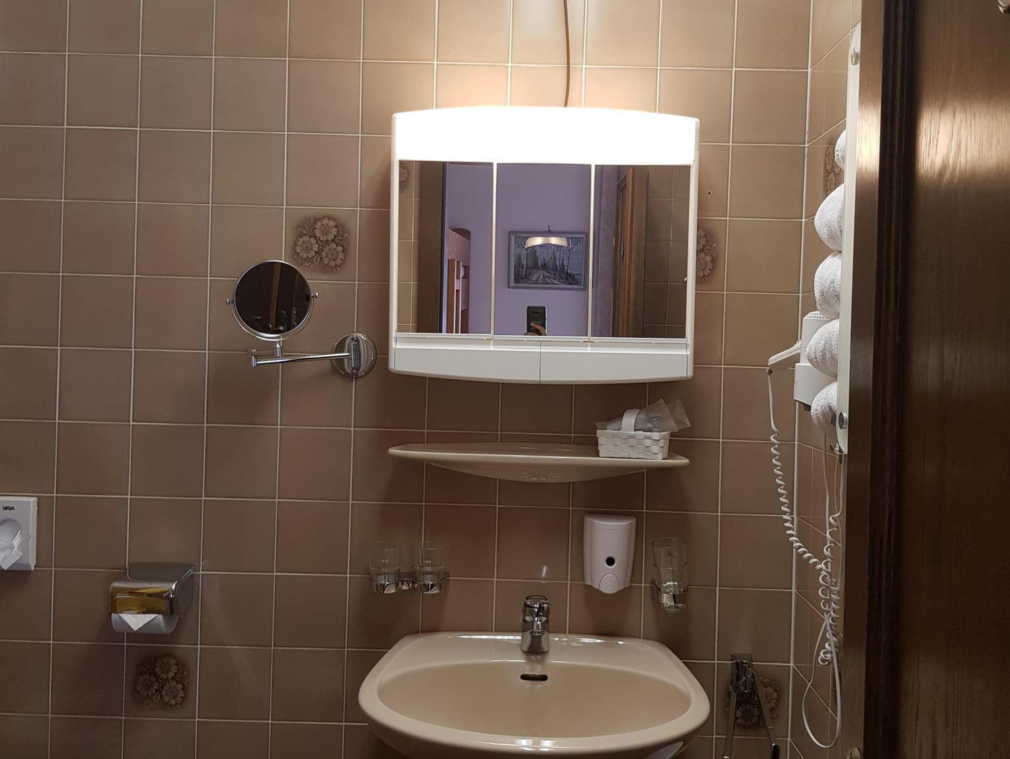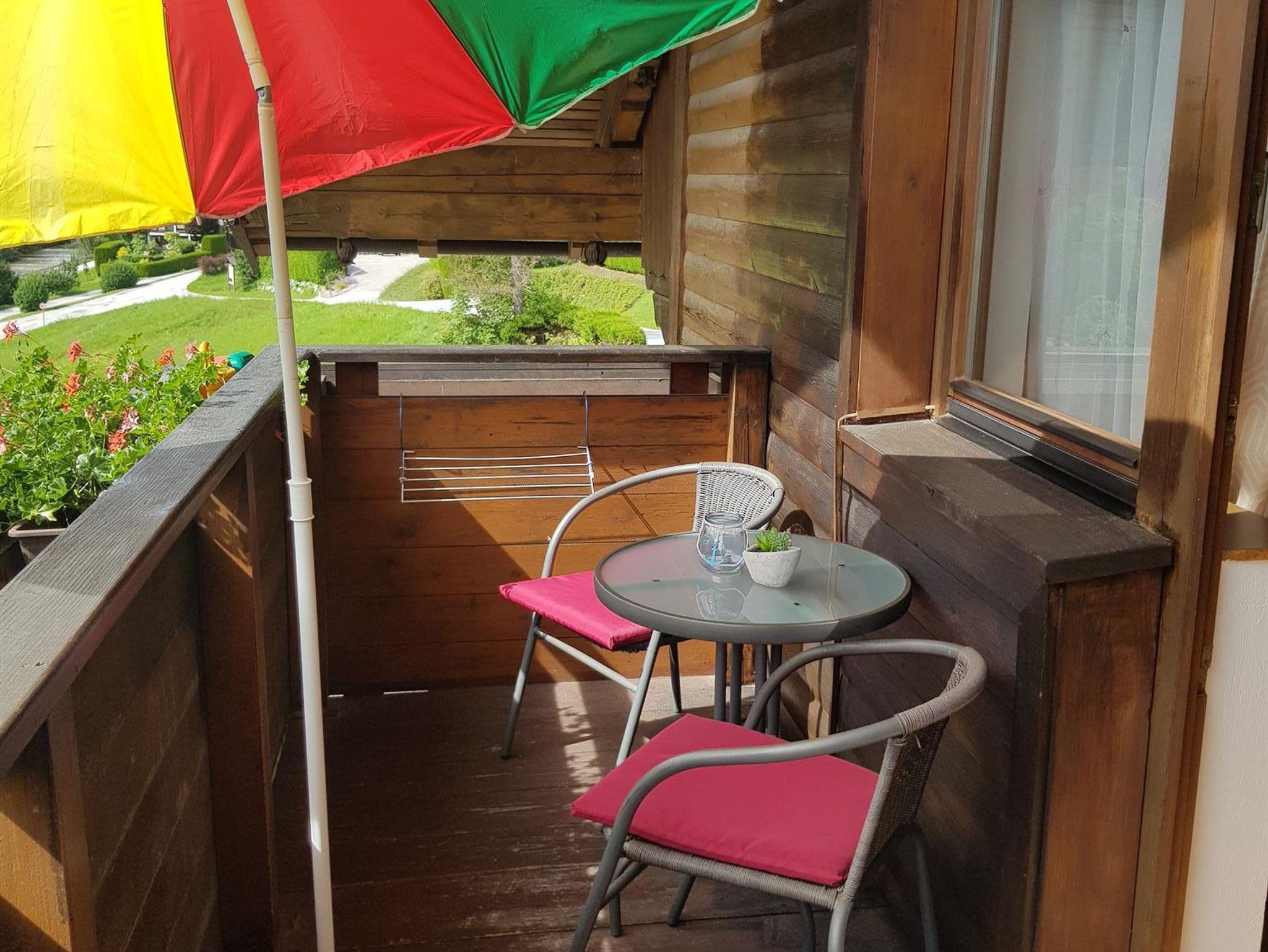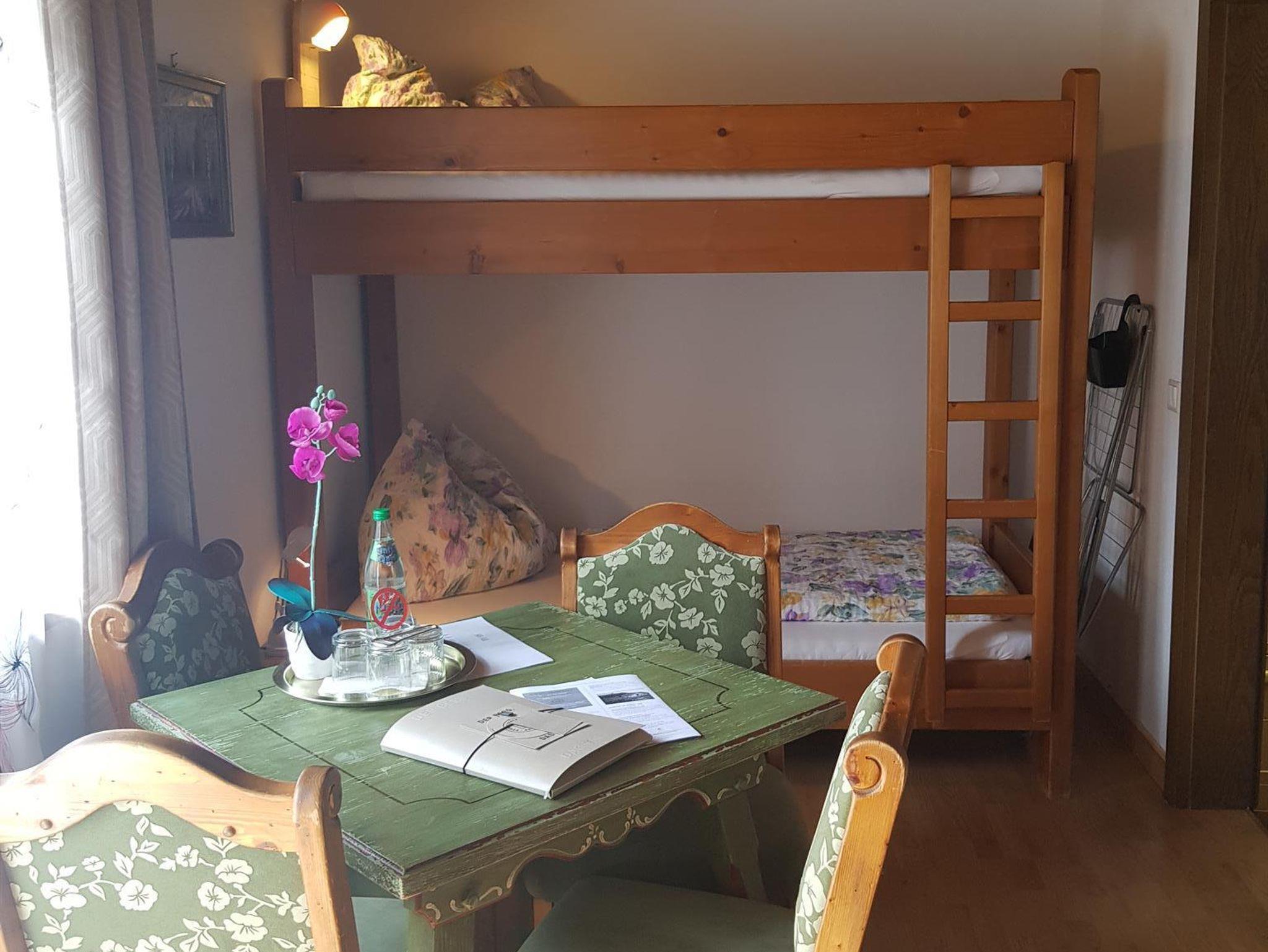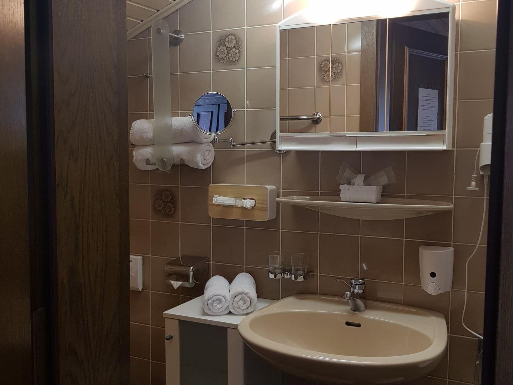 Geräumiges Zimmer mit Holzmöbeln, Fußbodenheizung, einem Sitzbereich, einem Flachbild-Sat-TV, einem Bad mit Dusche/WC und einem Balkon mit Panomramabergblick. Im Badezimmer liegt ein Haartrockner für Sie bereit. Eine Teeküche mit Aufenthaltsraum auf gleicher Etage steht zu Ihrer Verfügung.