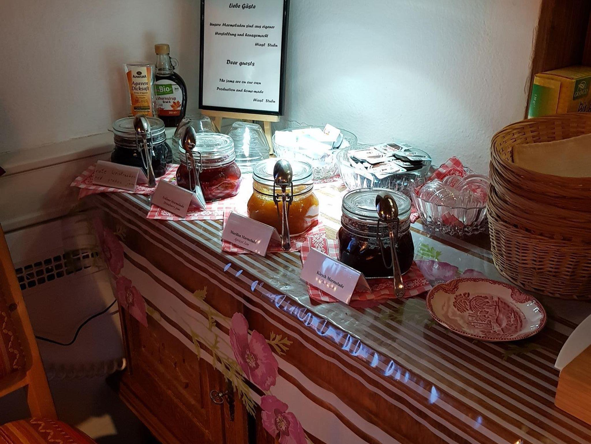Die Zimmer in der Hiasl Stub’n sind mit Holzmöbeln im alpenländischen Stil eingerichtet und ausgestattet mit Fußbodenheizung, einer Sitzecke, einem Flachbild-Sat-TV, einer Dusche/WC und einem Balkon mit Bergblick. Wir verfügen über ein Zimmer mit französischem Bett, ein Doppelzimmer, ein Dreibettzimmer und ein Familienzimmer mit Etagenbett für Kinder. Das Frühstücksbuffet wird in der historischen Hiasl Stubn, einem alpinen Frühstücksraum mit Bar und Kaminofen serviert. Gerne können Sie diesen Raum auch nach ihrer Tagesgestaltung nutzen und nach Absprache auch dort zu Abend essen.