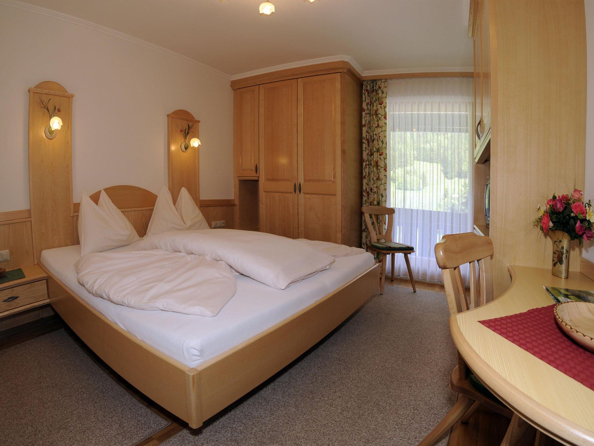 Freundliches Doppelbettzimmer mit Balkon in ruhiger Lage. Exklusive Ausstattung mit Du/Wc, Sat-TV und Safe. Kinderermäßigungen auf Anfrage.