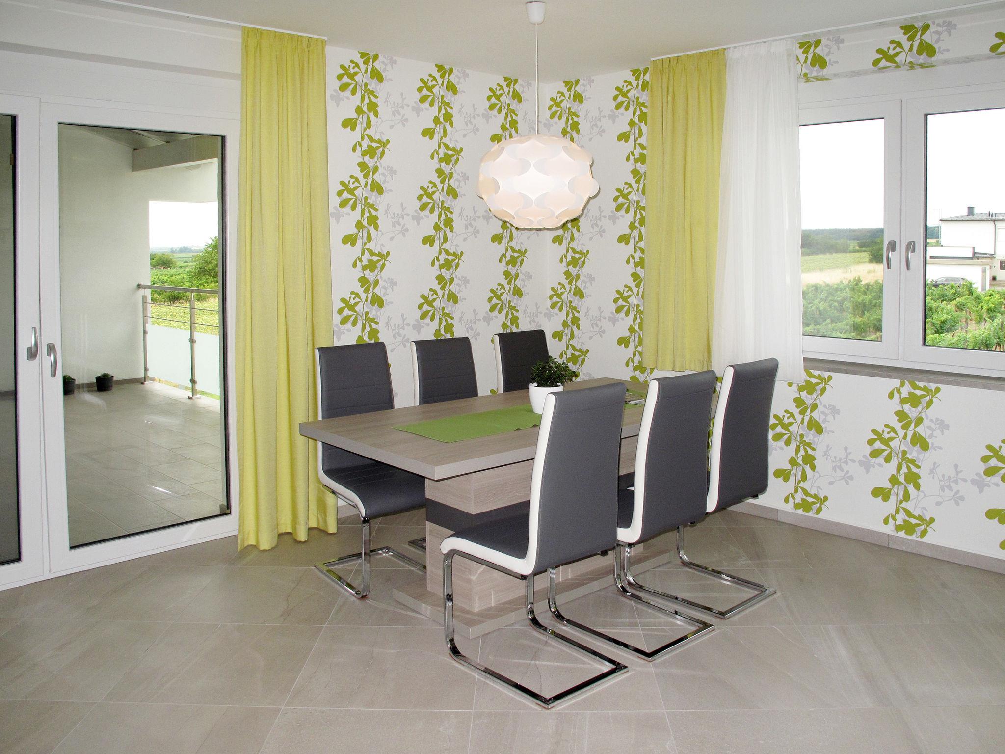 Modern, beautiful apartment block "Fuchs", built in 2015, surrounded by meadows and fields. 4 apartments in the property. 300 m from the centre of Donnerskirchen, 14 km from the centre of Eisenstadt, 66 km from the centre of Wien, in the residential district. Bus stop "Donnerskirchen B50" 350 m, outdoor swimming pool 1.5 km. Golf course (18 hole) 2.2 km. Please note: animals in the neighbourhood. The photograph shows a typical example. Additional accommodations can be booked.