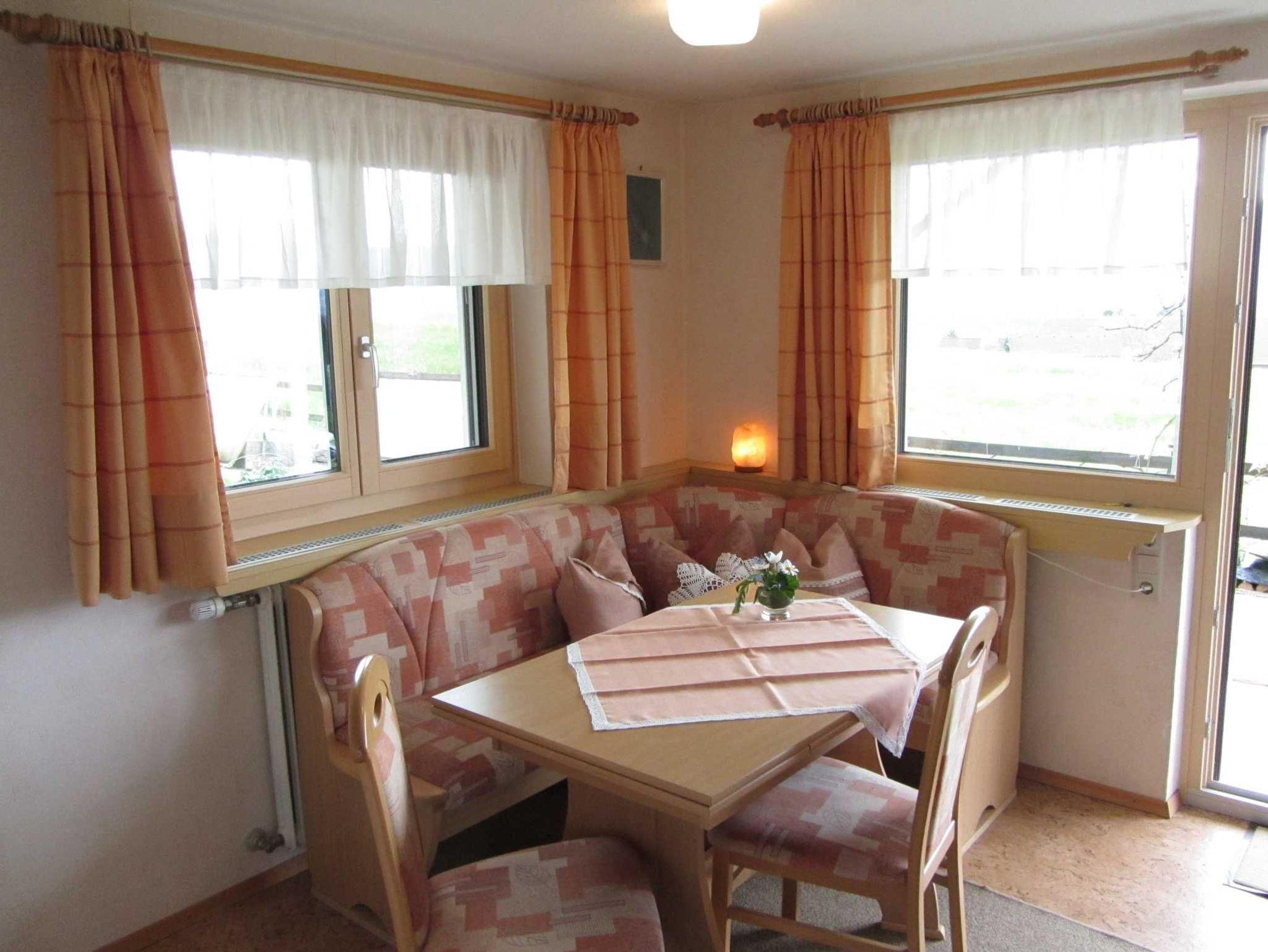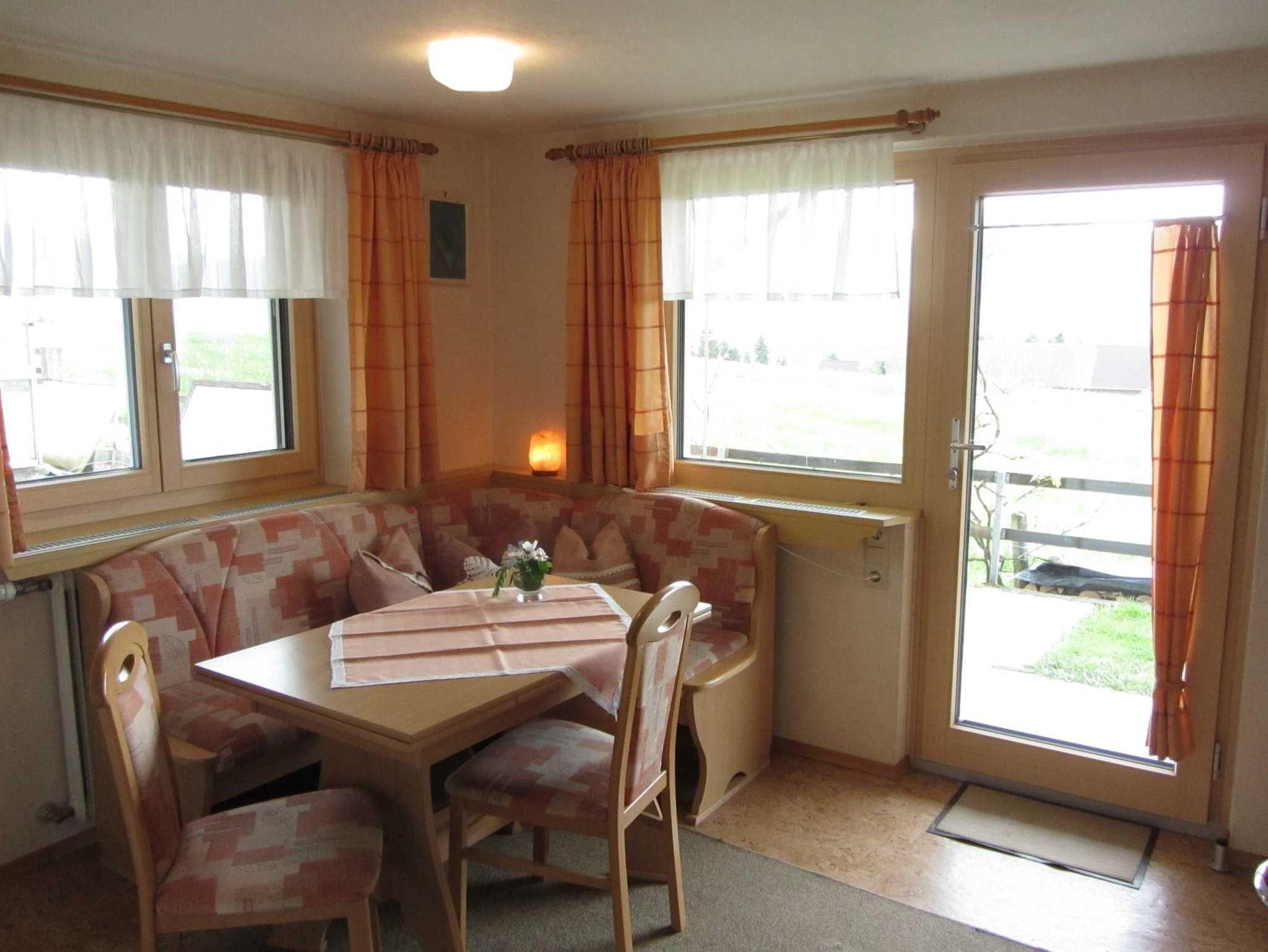 Die Ferienwohnung in sonniger Südlage mit Blick in die Bergwelt des Bregenzerwaldes ist ausgestattet mit einem Doppelzimmer und einem Zweibettzimmer mit Couch. Die Wohnküche ist komplett eingerichtet mit Eckbank, TV, Kühlschrank und E-Herd mit Backrohr.