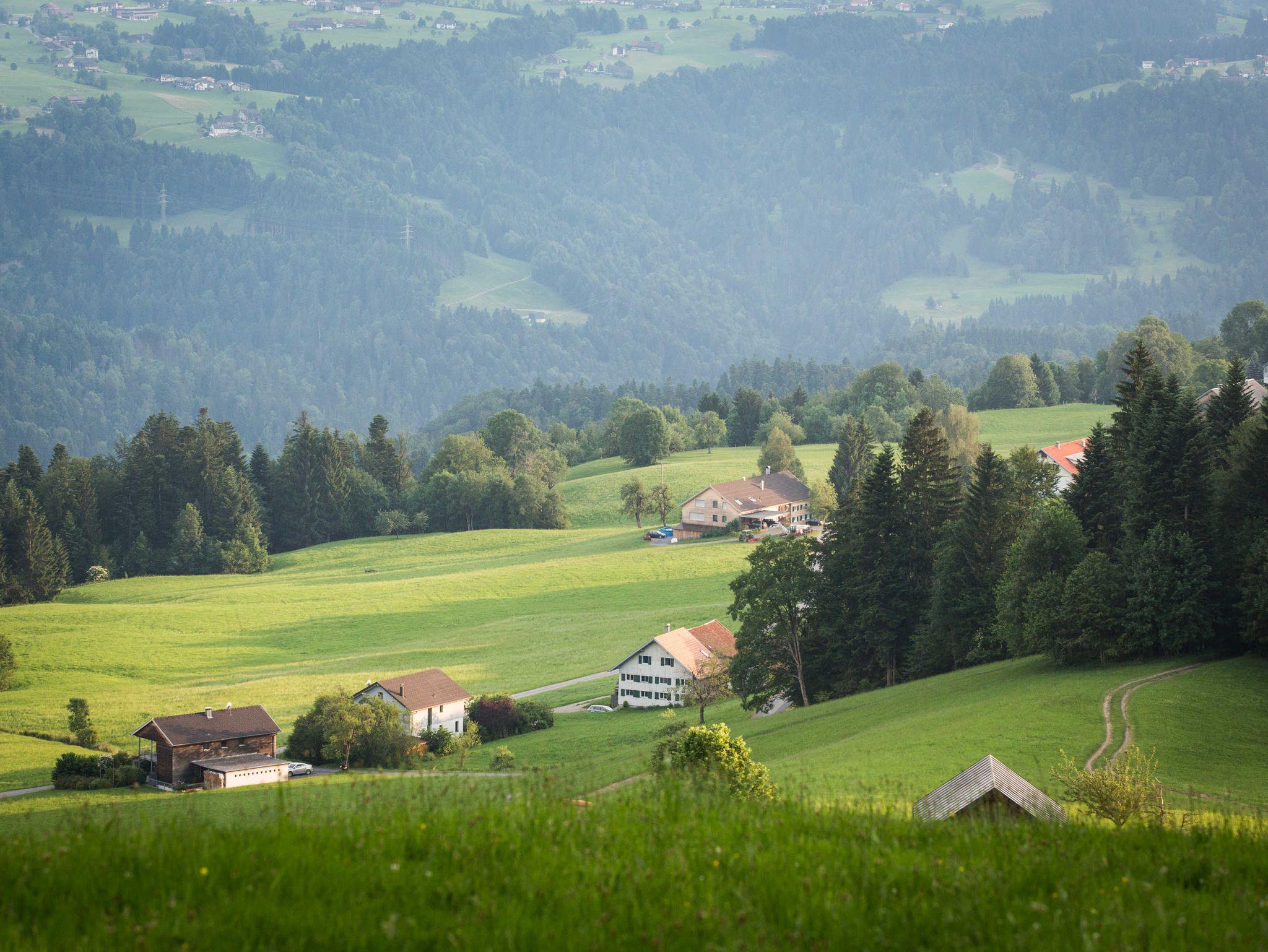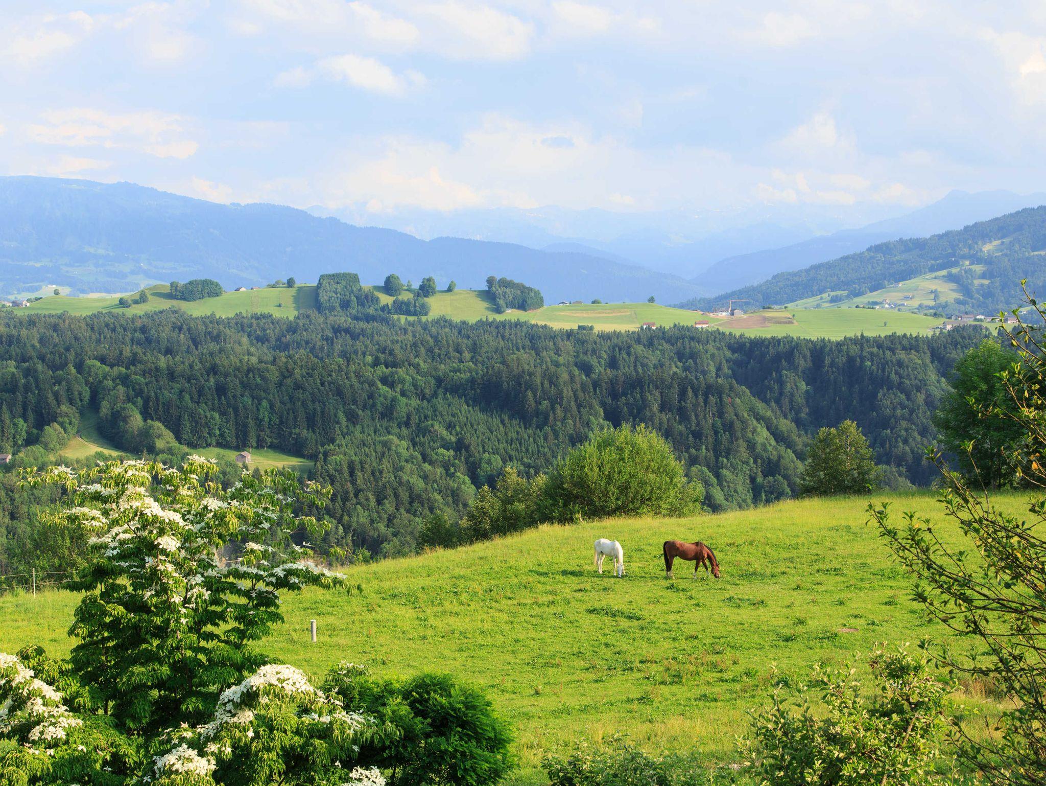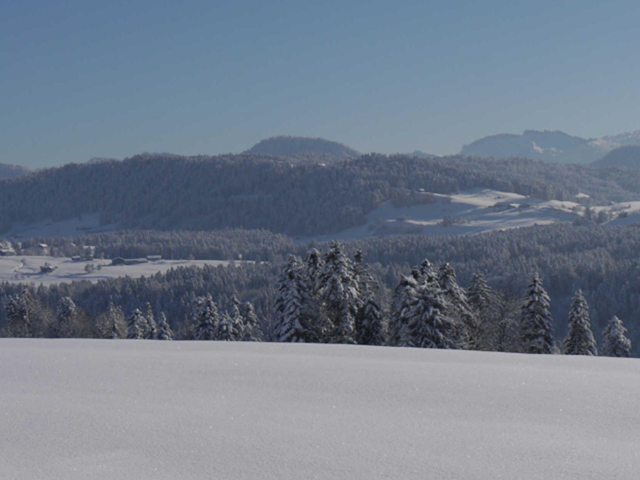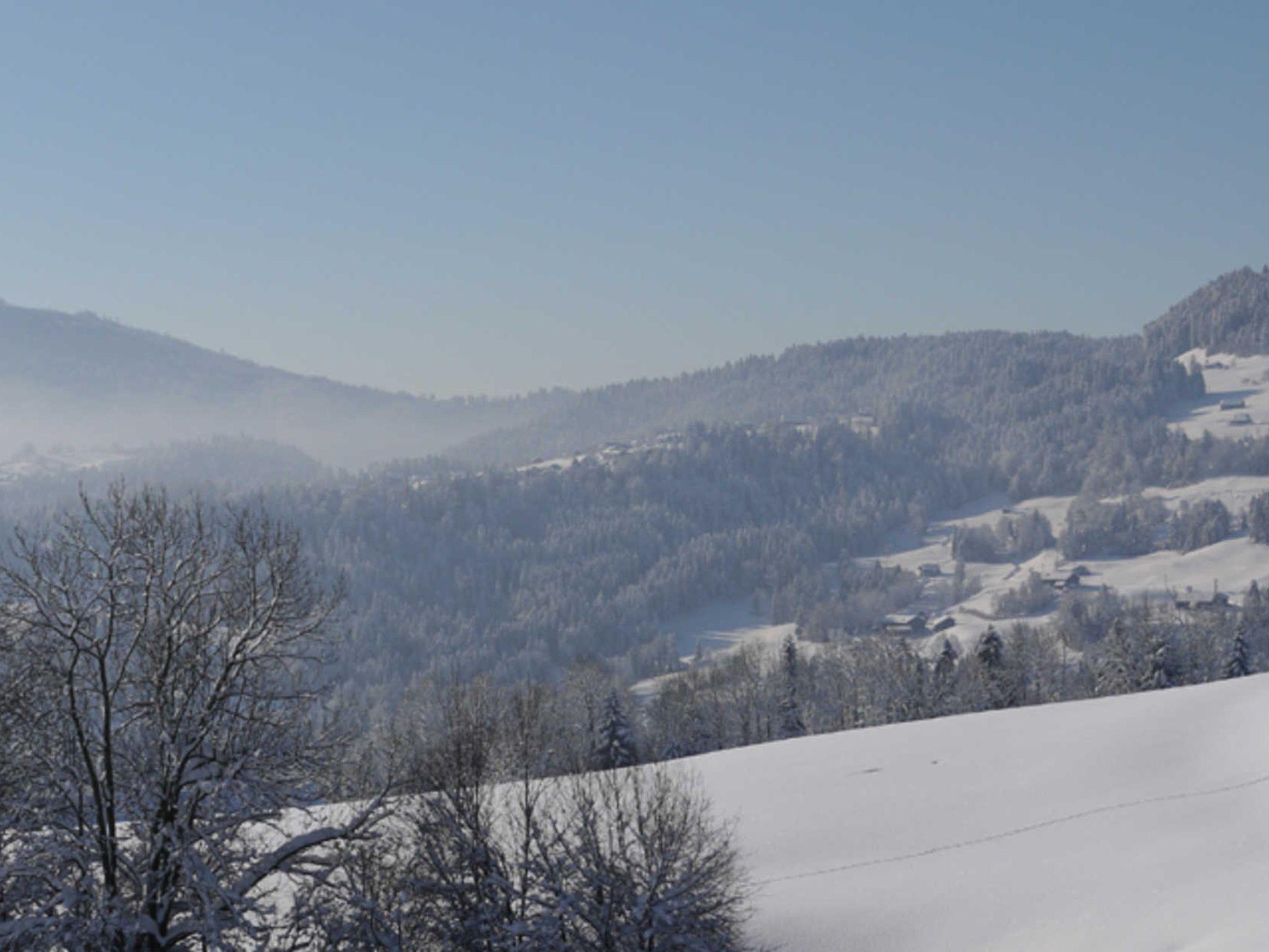 Sehr geschätzt von unsere Gästen ist die Veranda mit schönstem Ausblick auf den vorderen Bregenzerwald. Entspannen Sie sich auf unserer großzügig angelegten Liegewiese.