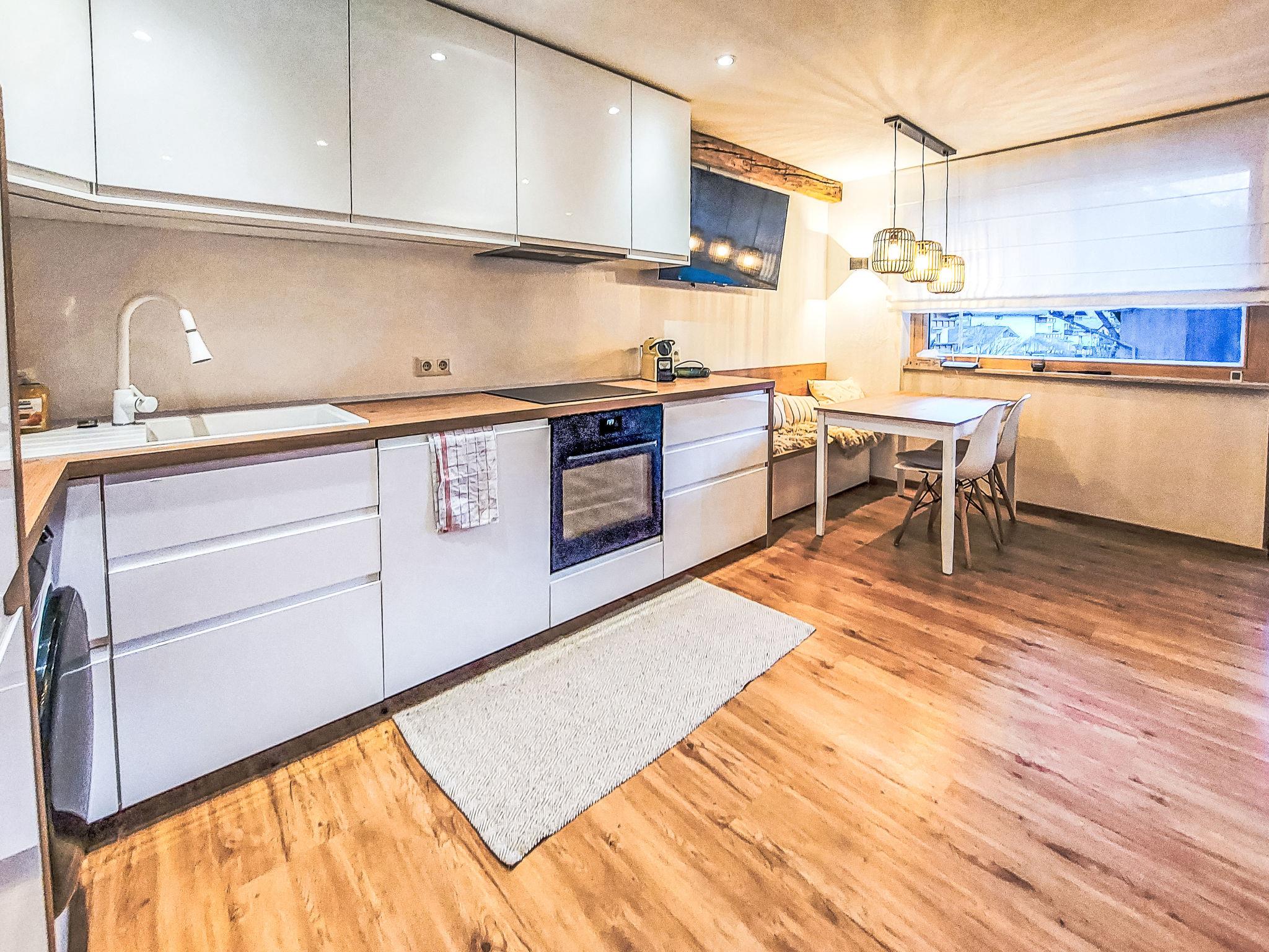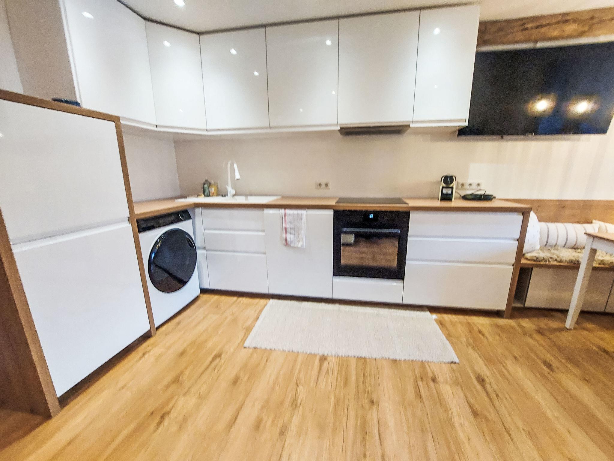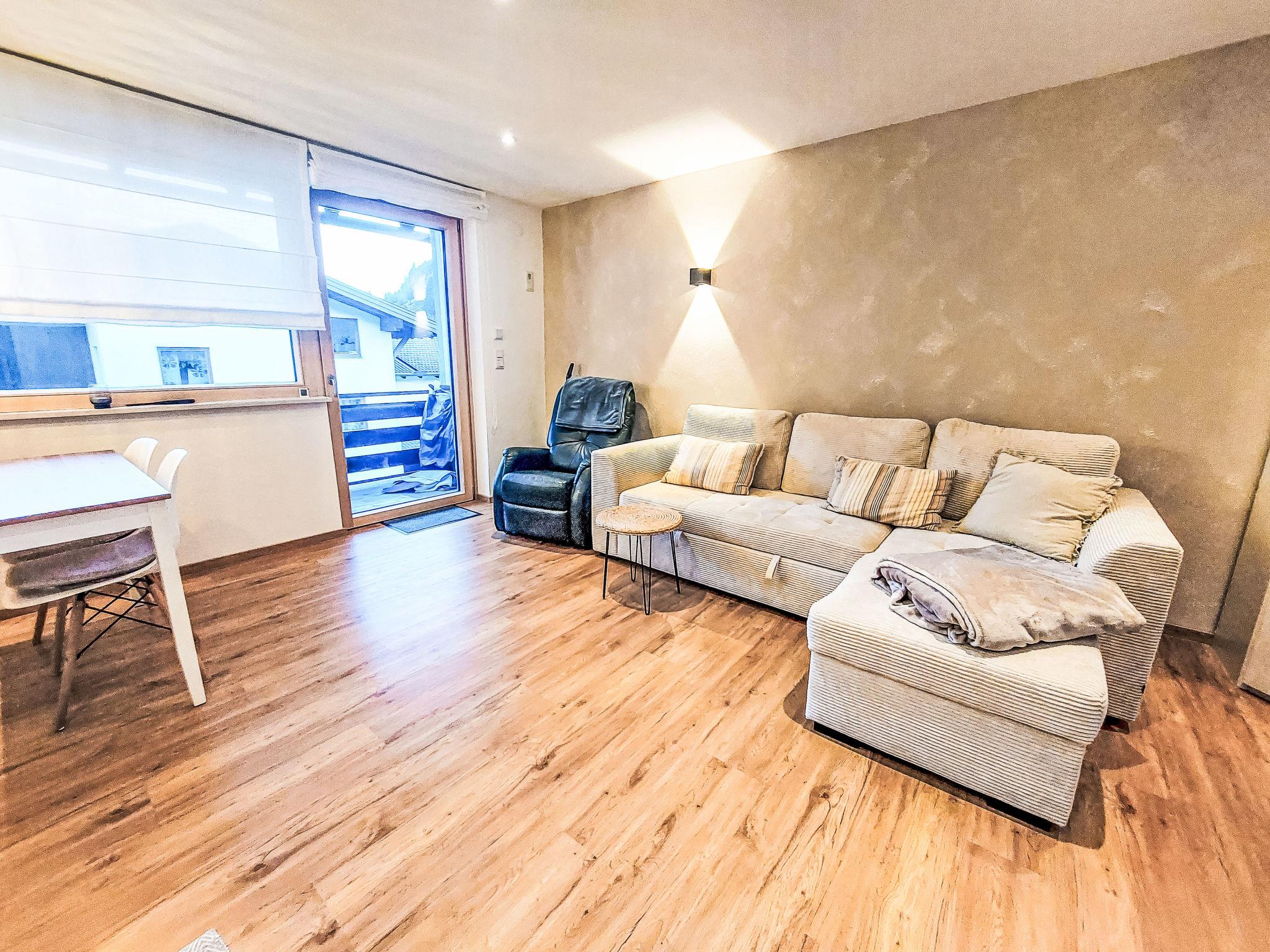 "AlpenNest", 2-room apartment 35 m2 on 3rd floor. Object suitable for 2 adults. Spacious and bright, very comfortable and tasteful furnishings: entrance hall. Living/dining room with dining table and TV (flat screen). Exit to the balcony. 1 double bedroom. Open kitchen (oven, dishwasher, 4 ceramic glass hob hotplates, toaster, kettle, electric coffee machine). Bath/WC. Parquet floors. Balcony 5 m2. Beautiful view of the mountains. Facilities: washing machine. Please note: non-smokers only, non-smoking house. No lift.