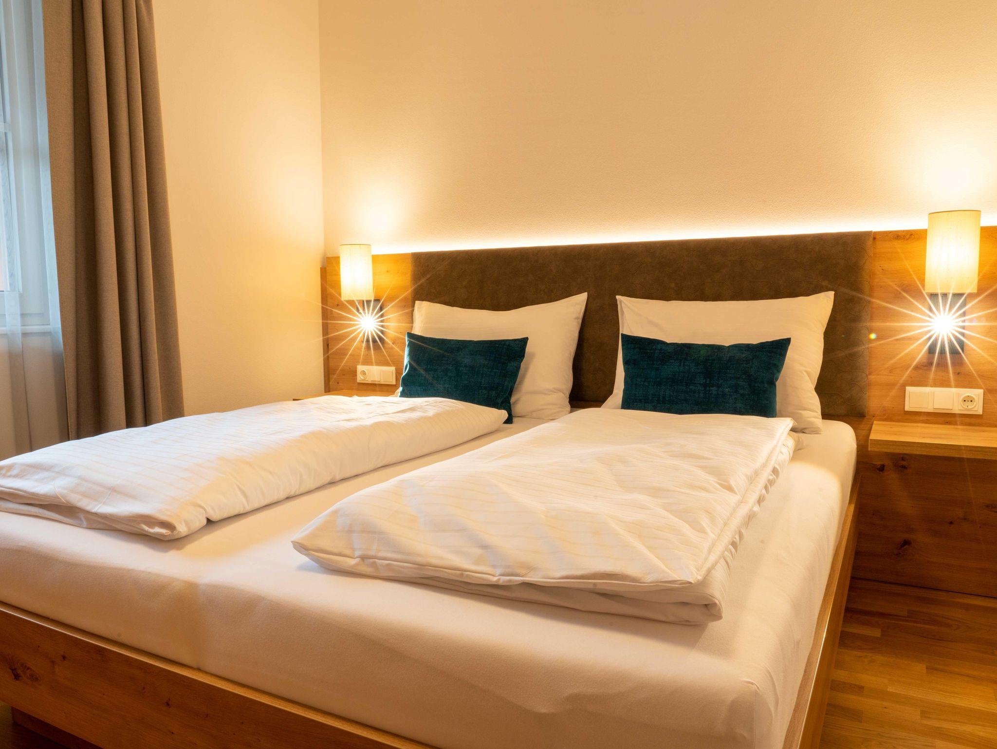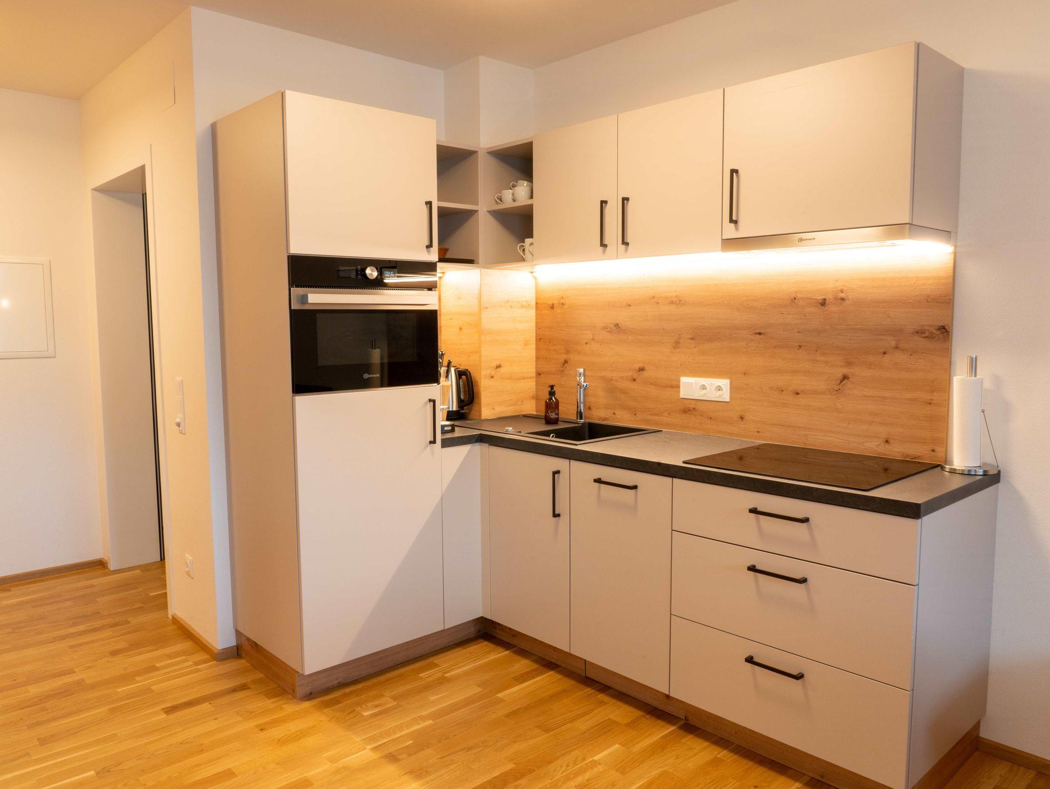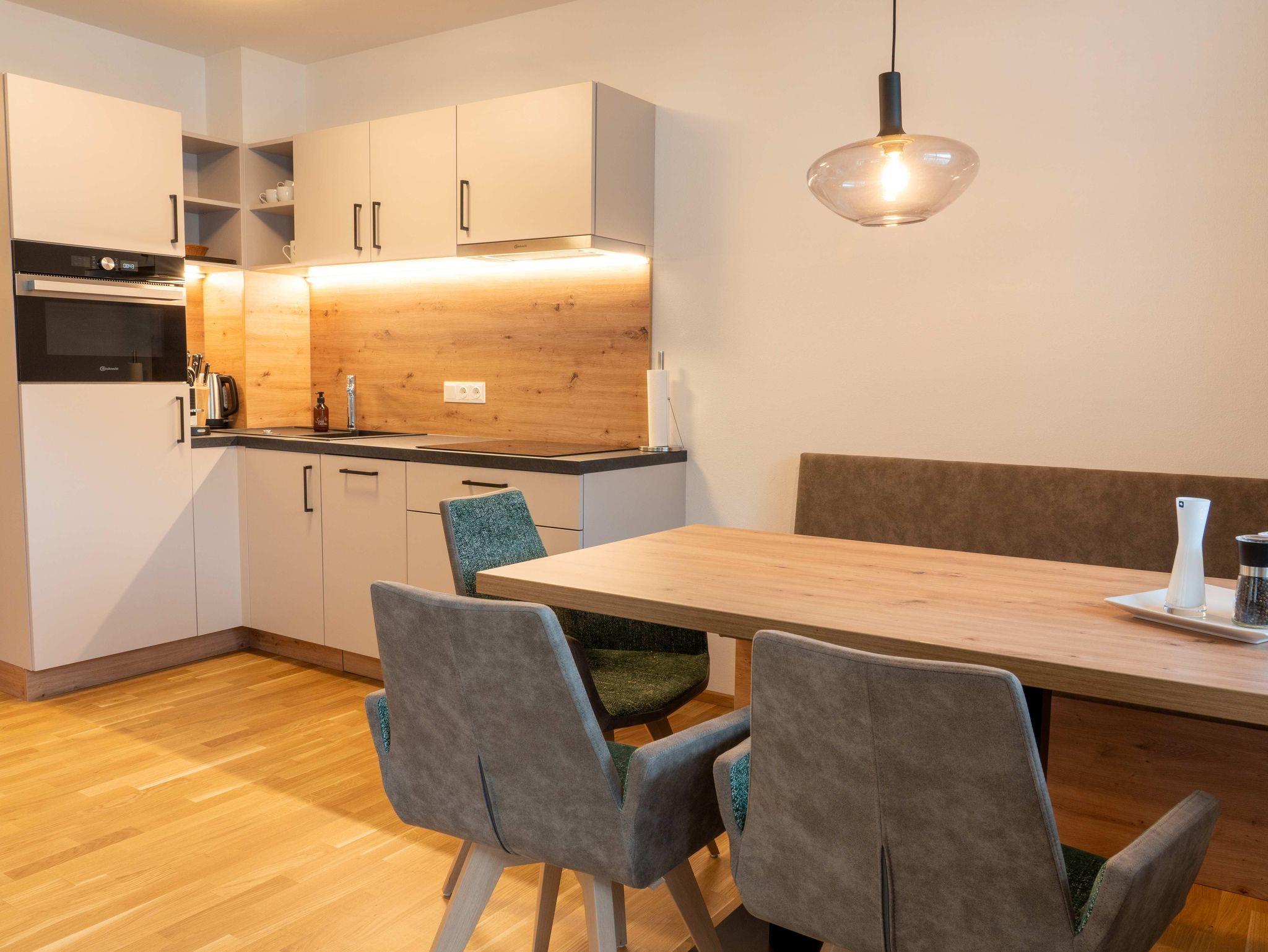 • nagelneuen, topausgestatteten Ferienwohnungen für 1 – 6 Personen mit Wohnküche inkl. „Kitchen-Kit“, 1-2 Schlafzimmern mit hochwertigen „Voglauer“ Betten inkl. Bettwäsche, 1-2 Badezimmern inkl. Handtücher und Haarfön sowie modernen Annehmlichkeiten wie Smart-TV in jedem Zimmer, WLAN, Geschirrspüler, Kühlschrank mit Gefrierfach, Backofen mit Mikrowellenfunktion u.v.m.