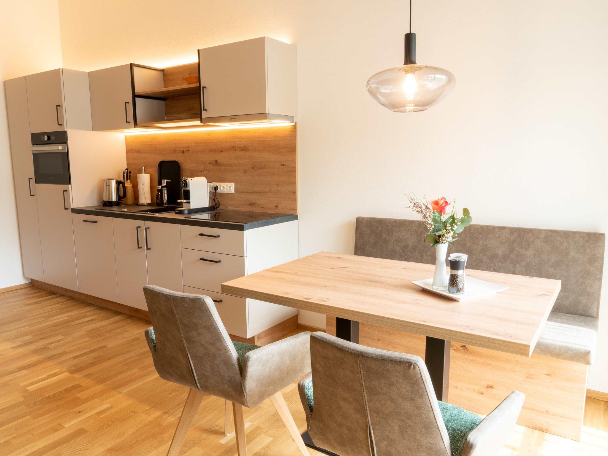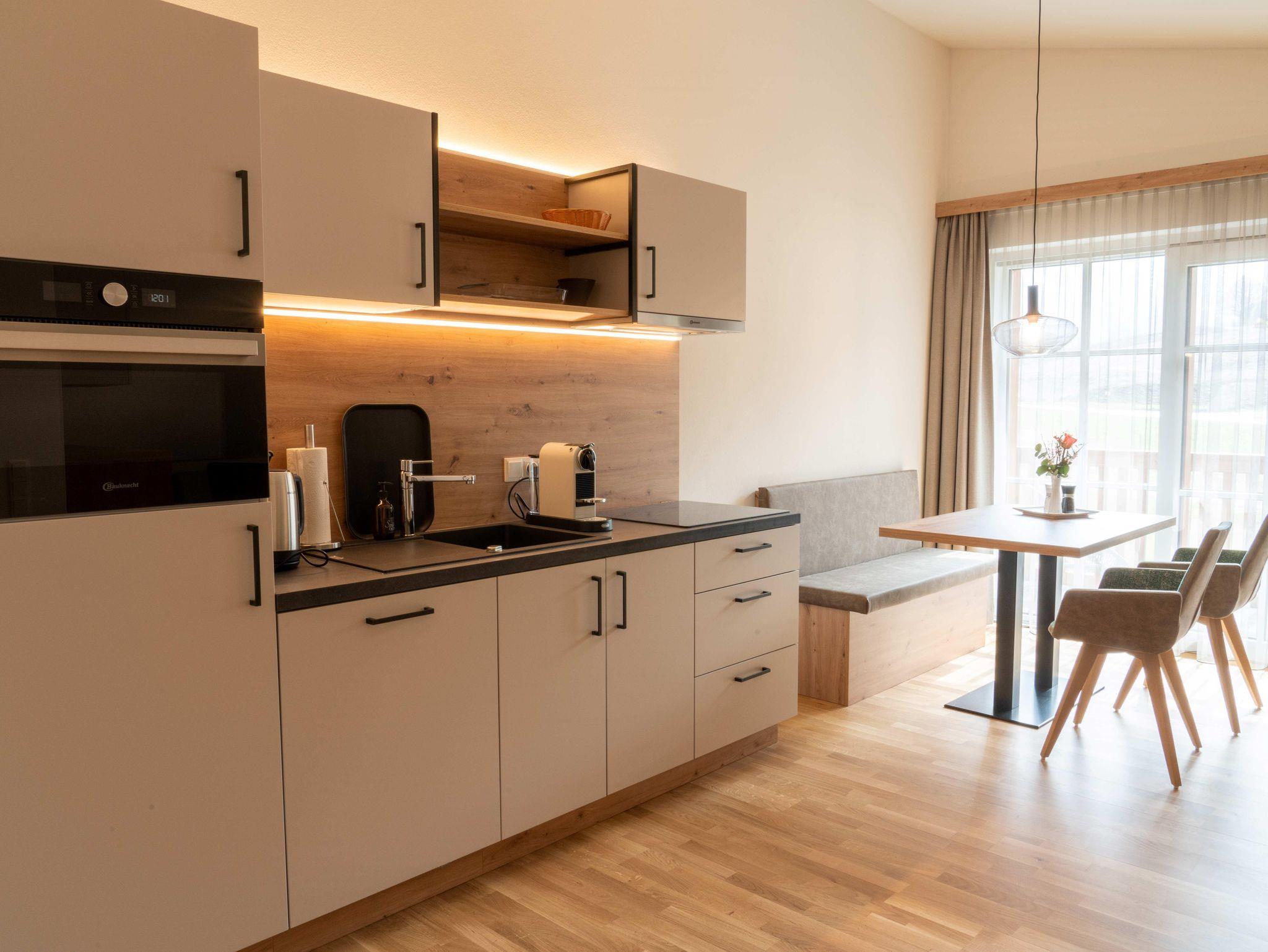 • nagelneuen, topausgestatteten Ferienwohnungen für 1 – 6 Personen mit Wohnküche inkl. „Kitchen-Kit“, 1-2 Schlafzimmern mit hochwertigen „Voglauer“ Betten inkl. Bettwäsche, 1-2 Badezimmern inkl. Handtücher und Haarfön sowie modernen Annehmlichkeiten wie Smart-TV in jedem Zimmer, WLAN, Geschirrspüler, Kühlschrank mit Gefrierfach, Backofen mit Mikrowellenfunktion u.v.m.