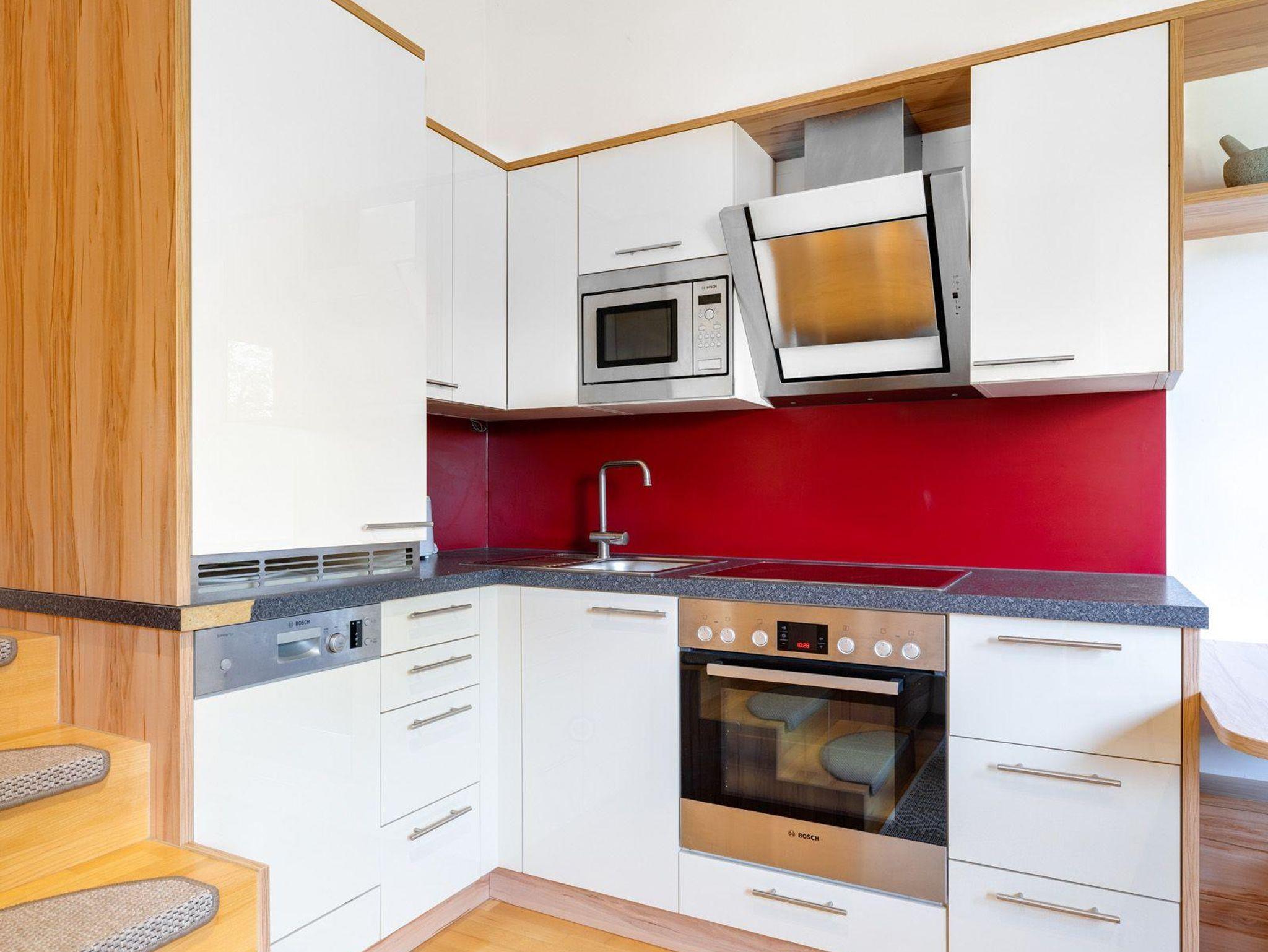 2-3 Personen, kleiner Wohnraum mit Küche, Schlafcouch (200 cm x 200 cm), Bad mit Dusche und WC, Doppelzimmer, Erdgeschoß mit eigenem Eingang, Südterrasse mit Mittagssonne