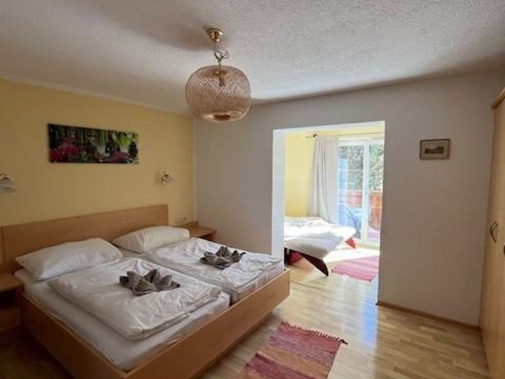 für 2-3 Personen, Sofa für 3. Person – Bett 180 cm lang, 90 cm breit, Sitzgelegenheit, Doppelbett, Bad mit Dusche und WC, 2. Stock, Südwestbalkon zur Sonnenseite mit traumhaften Garten- und Bergblick