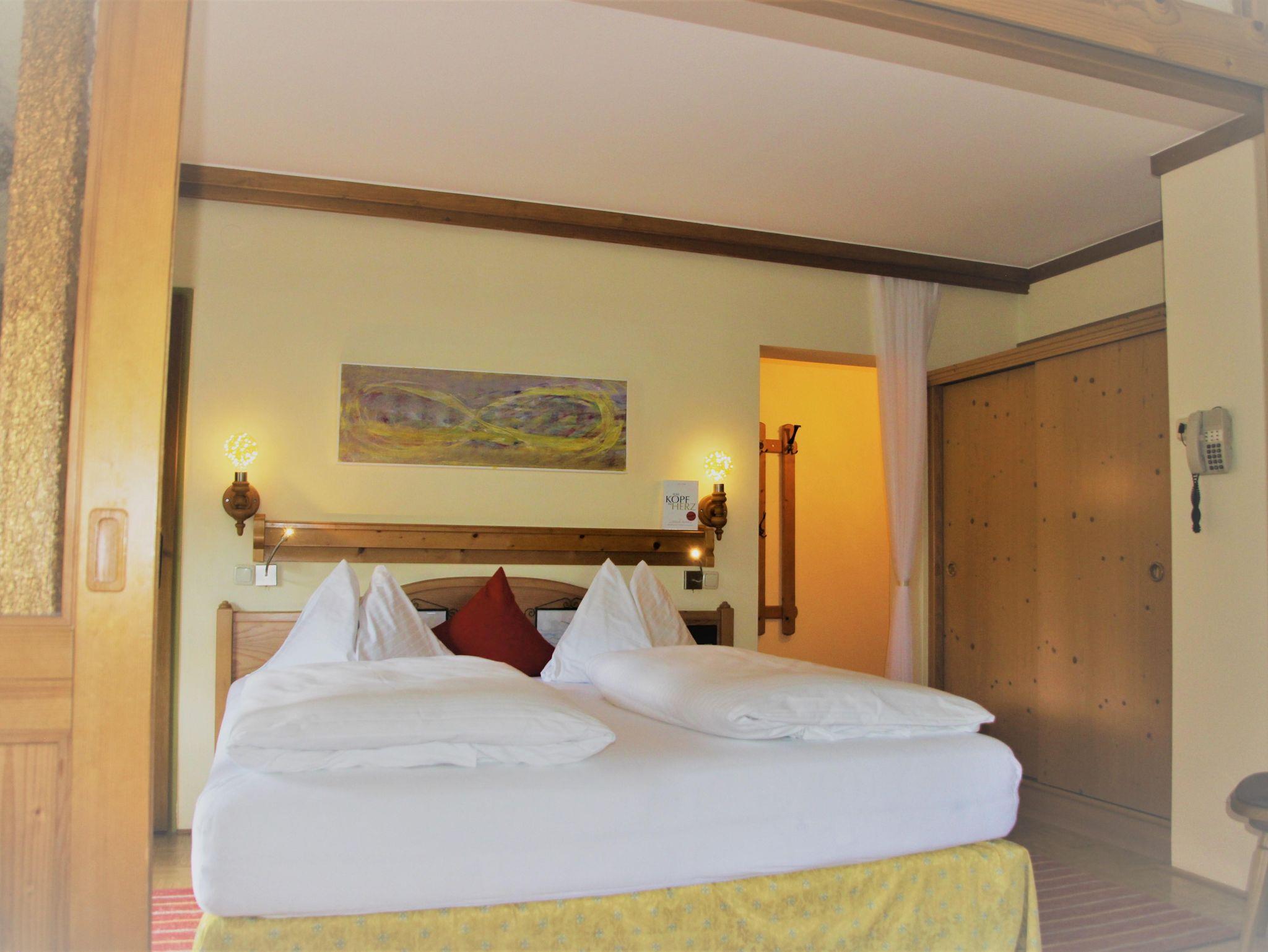 • geräumigen, Vollholz-möblierten Einzel-, Doppel-, Familienzimmern und Studios mit Boxspringbetten in „Treca“ Topqualität, Dusche oder Badewanne, separatem WC