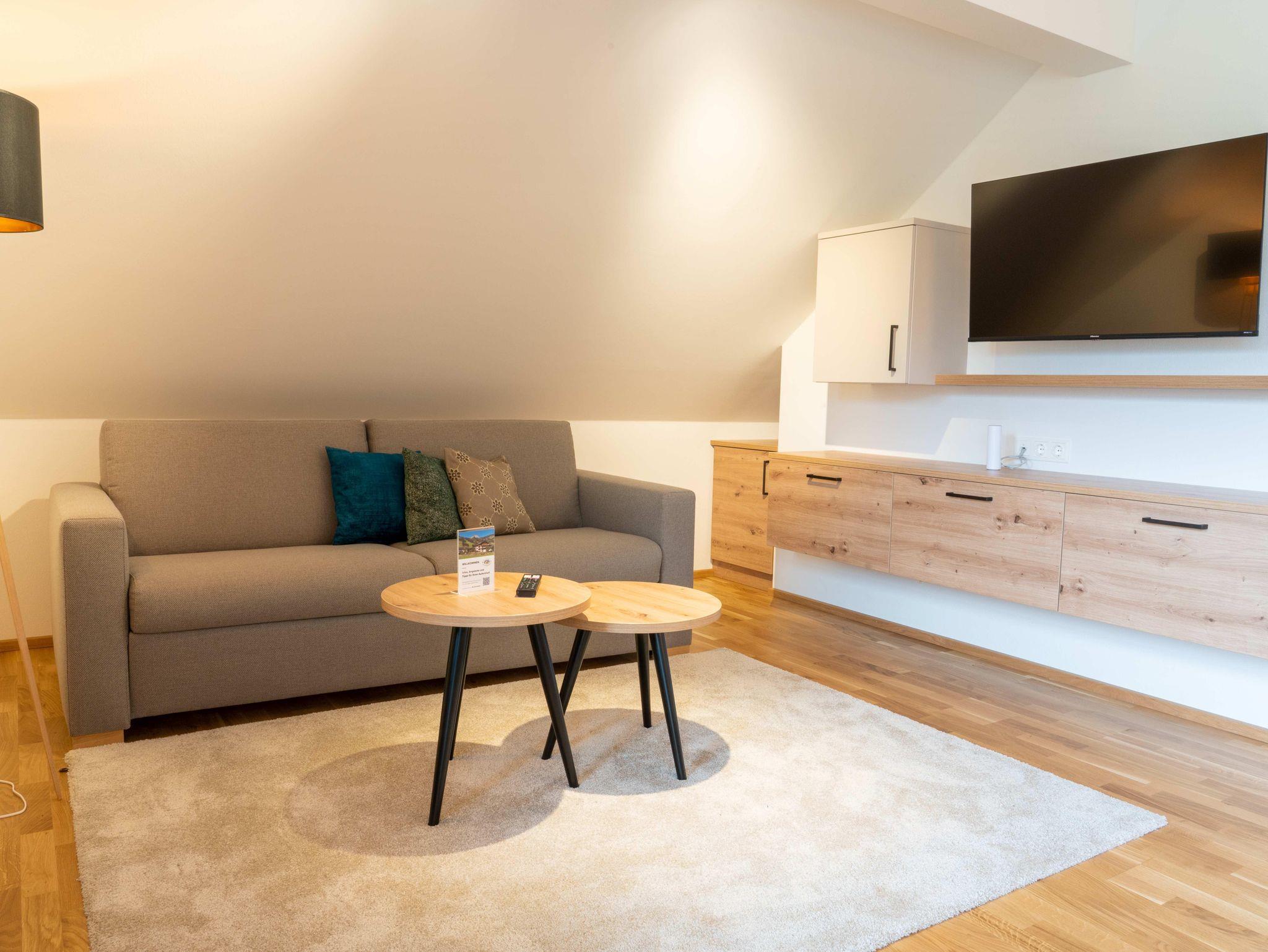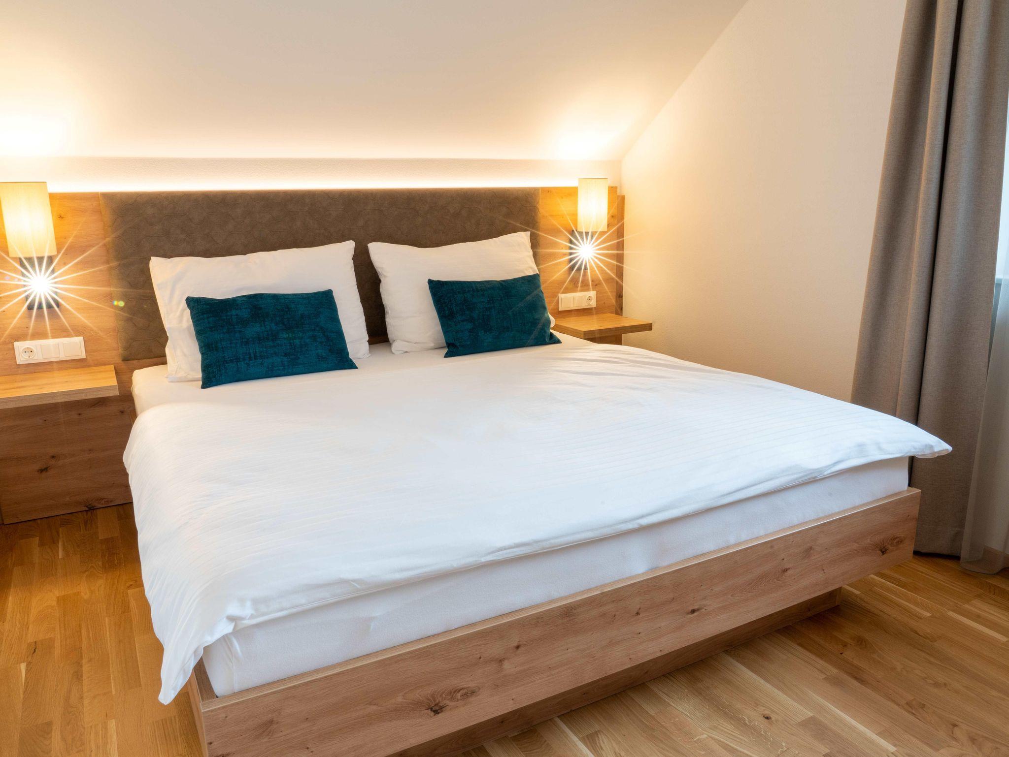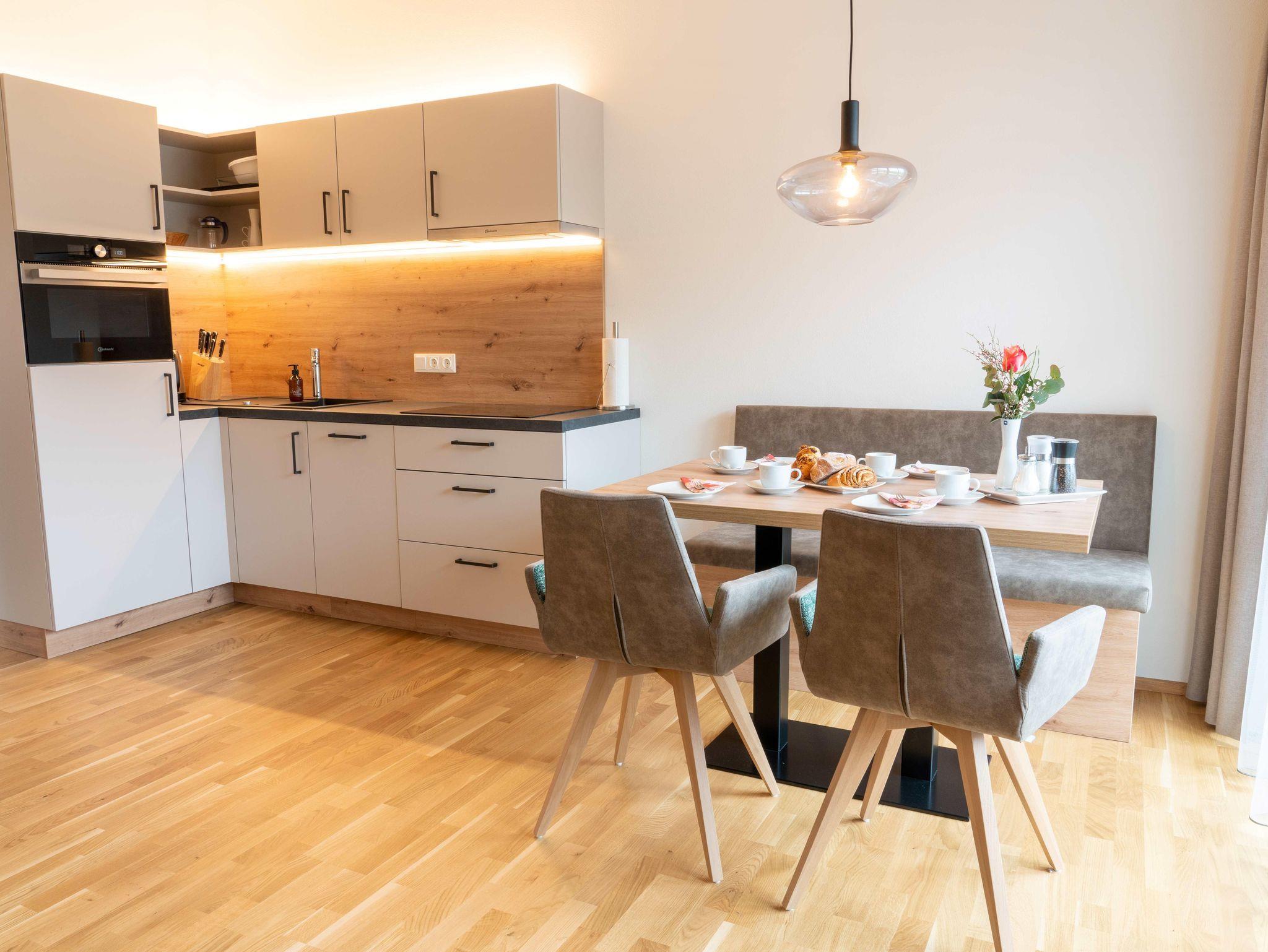 • nagelneuen, topausgestatteten Ferienwohnungen für 1 – 6 Personen mit Wohnküche inkl. „Kitchen-Kit“, 1-2 Schlafzimmern mit hochwertigen „Voglauer“ Betten inkl. Bettwäsche, 1-2 Badezimmern inkl. Handtücher und Haarfön sowie modernen Annehmlichkeiten wie Smart-TV in jedem Zimmer, WLAN, Geschirrspüler, Kühlschrank mit Gefrierfach, Backofen mit Mikrowellenfunktion u.v.m.