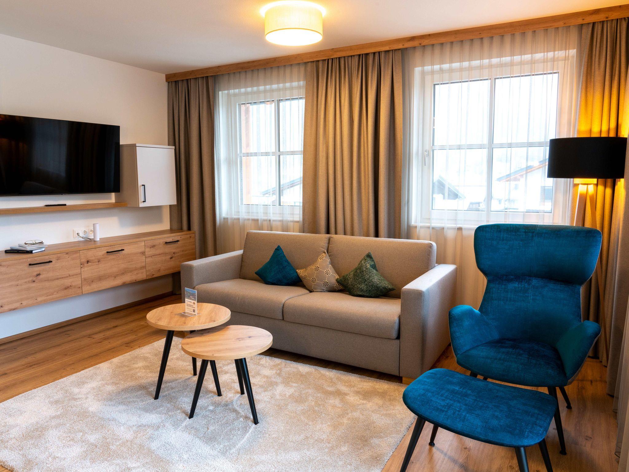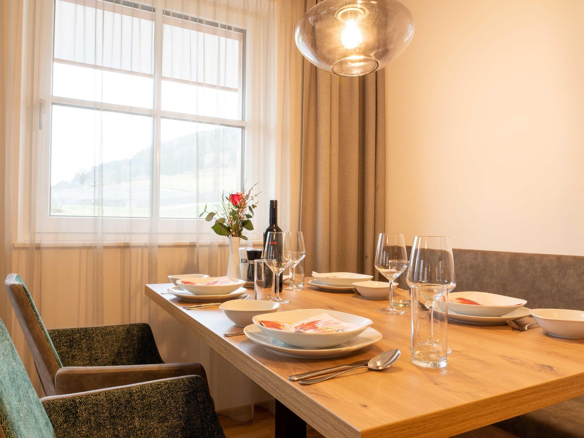• nagelneuen, topausgestatteten Ferienwohnungen für 1 – 6 Personen mit Wohnküche inkl. „Kitchen-Kit“, 1-2 Schlafzimmern mit hochwertigen „Voglauer“ Betten inkl. Bettwäsche, 1-2 Badezimmern inkl. Handtücher und Haarfön sowie modernen Annehmlichkeiten wie Smart-TV in jedem Zimmer, WLAN, Geschirrspüler, Kühlschrank mit Gefrierfach, Backofen mit Mikrowellenfunktion u.v.m.