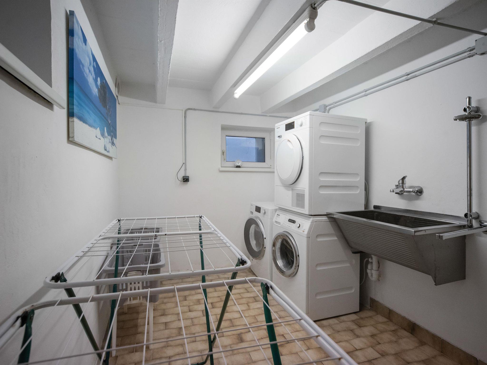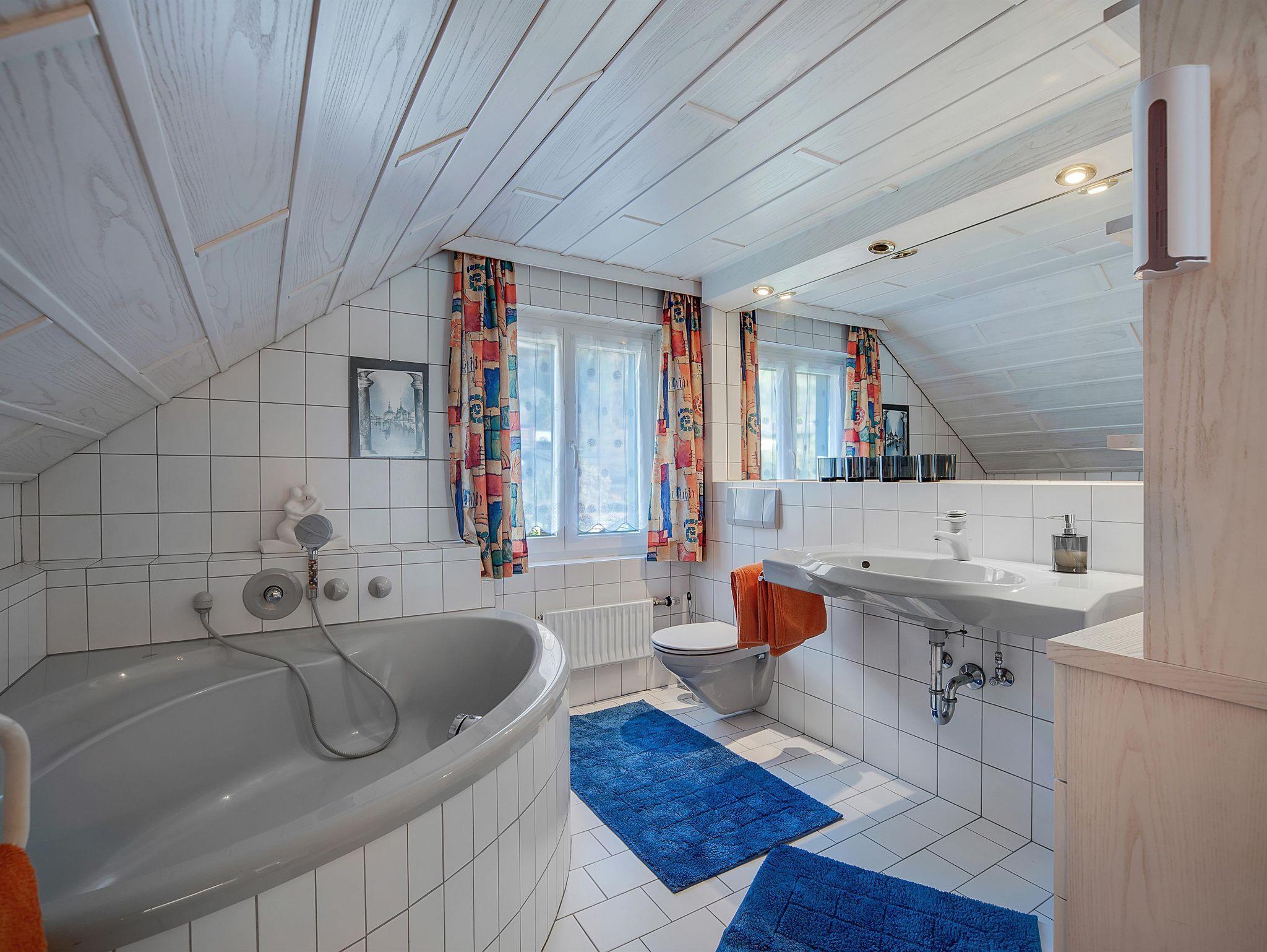 Im 1. Stock ist ein geräumiges Badezimmer mit einer großen Badewanne, Waschbecken und Toilette - im Erdgeschoß ein kleines Badezimmer (2024 komplett saniert)mit Dusche, WC und Waschbecken.
