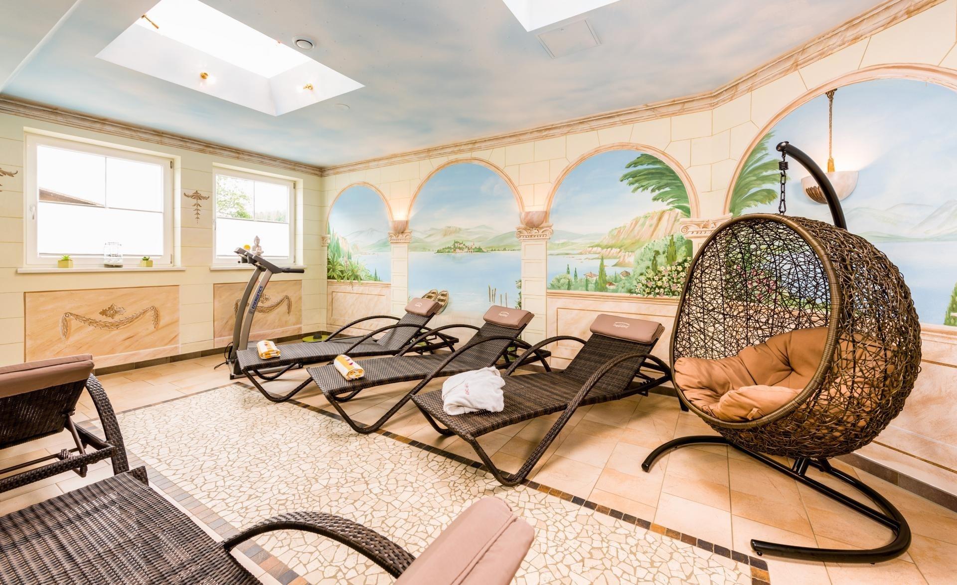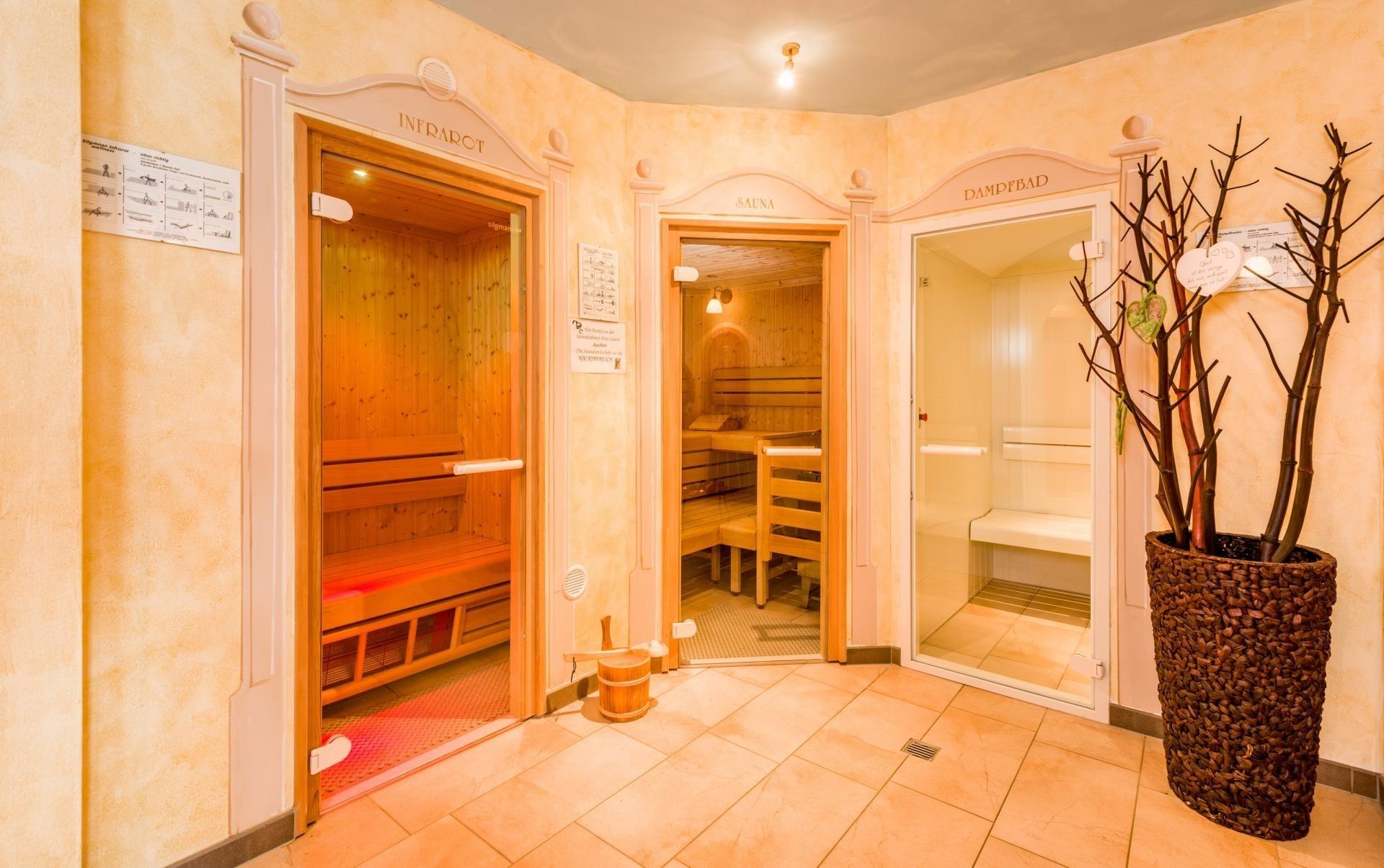 Entspannen Sie in unserem Wellnessbereich mit Sauna, Dampfbad und Infrarotkabine oder genießen Sie eine wohltuende Massage. Für diejenigen, die auch im Urlaub aktiv bleiben möchten, steht ein Fitnessraum zur Verfügung.